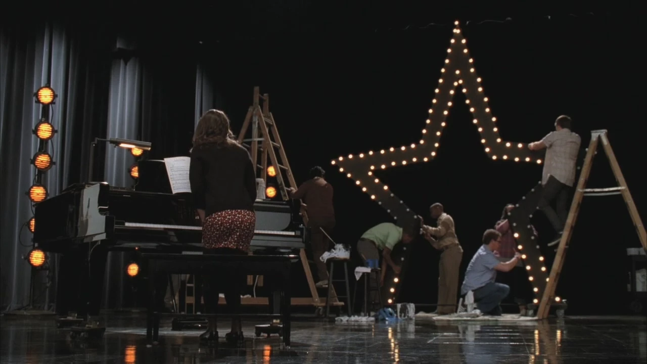 In Wie Sue Weihnachten gestohlen hat bringt Rachel Finn in die Aula, um für ihn Merry Christmas Darling zu singen. Der A/V Club hat wahrscheinlich das Winterwunderland auf der Bühne aufgebaut und sogar Schneemaschinen manipuliert, um Rachels Performance zu steigern.