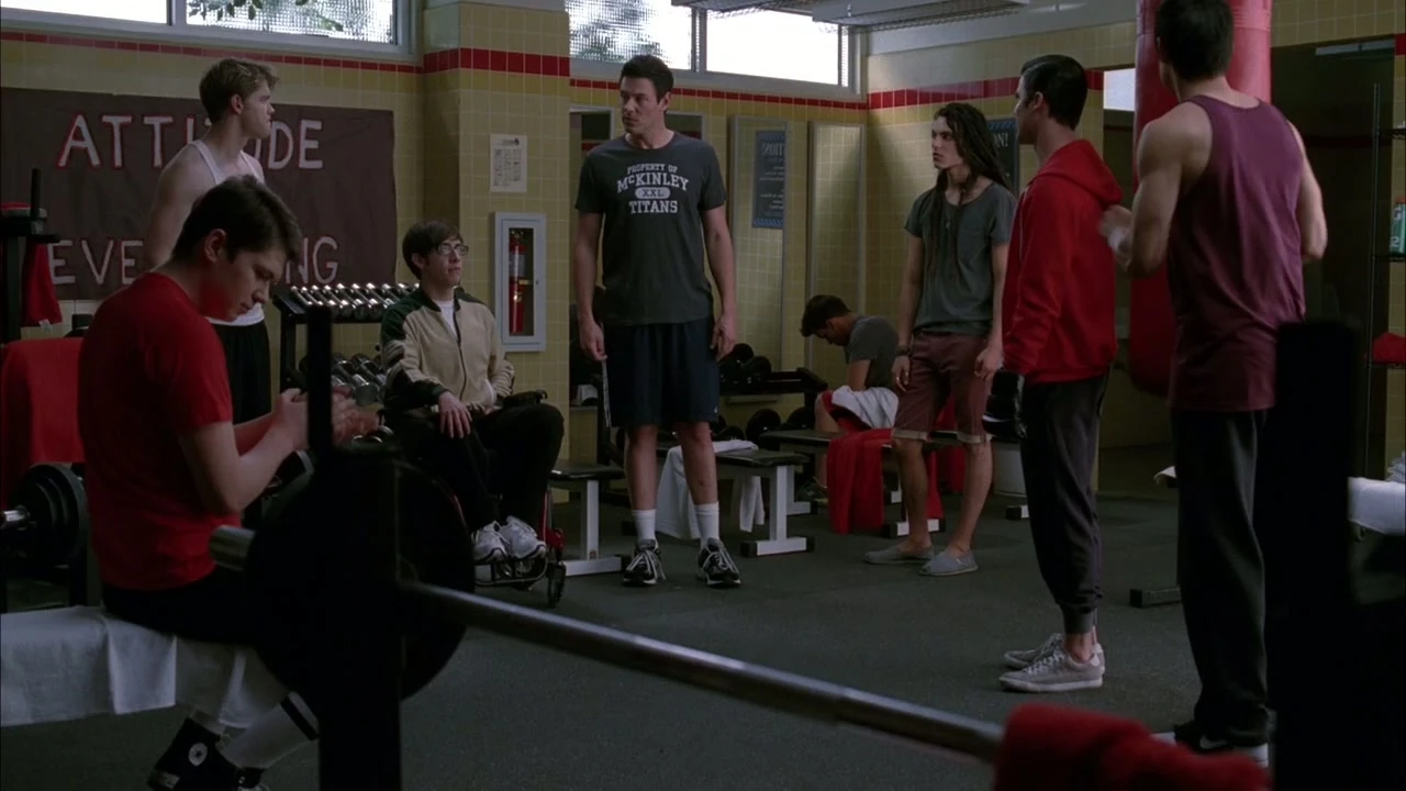 Mike bittet Blaine im Trainingsraum um einige Haar-Tipps, als Finn sich in das Gespräch mischt und den anderen Jungs verdeutlicht, dass Puck nicht anwesend ist und ihn niemand seit einiger Zeit gesehen hat. Er ist der Meinung, dass sie alle den Abschluss schaffen sollten, weshalb sie Puck helfen wollen, seine Erdkunde-Note zu retten.
