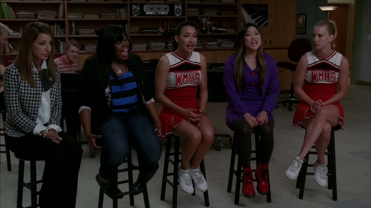 Roz, Shannon und Sue möchten mit den Mädchen über Santanas Kommentar sprechen. Als diese die Sache nicht ernst nehmen, erzählt Coach Roz ihnen von ihrer Tante, die einen netten Mann geheiratet hat, der sein wahres Gesicht nur zuhause gezeigt hat. Sue gibt den Mädchen zu verstehen, dass es viele Songs gibt, die über Frauen, die von ihren Männern geschlagen werden, handelt. Sie möchte, dass die Mädchen als Wochenaufgabe einen dieser Songs wählen, um zu zeigen, dass eine Frau sich wehren kann und diese Gewalt nicht mitmachen muss.