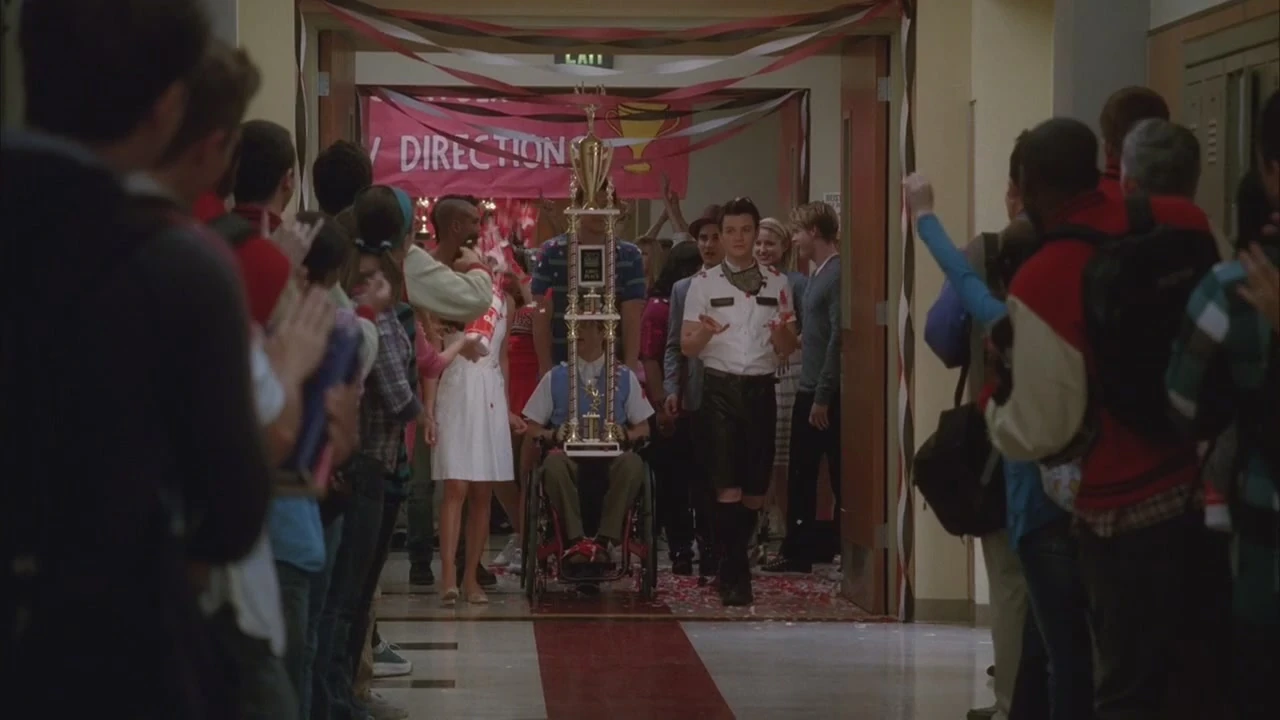 wird vom Publikum bejubelt und sogar Sue dreht sich zu ihm und beglückwünscht ihn. Der Vorhang geht auf und die New Directions singen We Are The Champions. Will wird von Finn auf die Bühne geholt und umart nacheinander seine Schüler. Am Ende nimmt er seine Auszeichnung entgegen und präsentiert sie stolz dem Publikum.