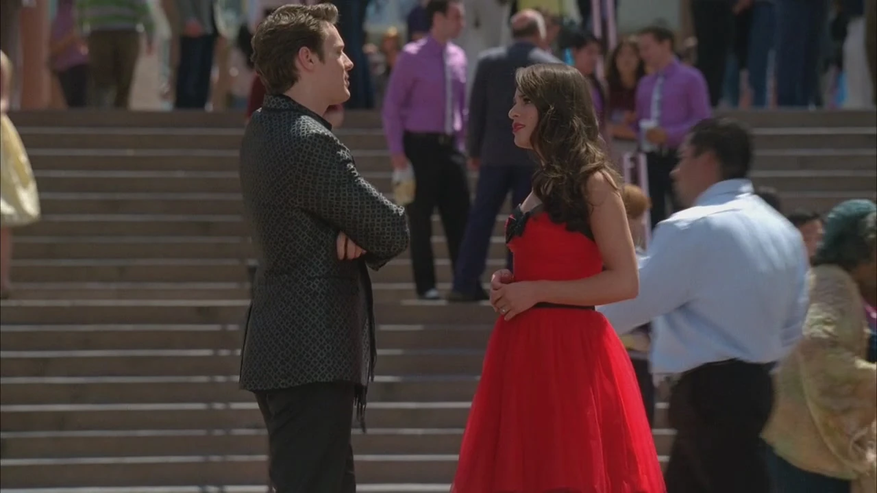 - Nachdem die New Directions ihre Performance beendet haben, ist Mercedes' Kleiderträger wieder offen und reingesteckt, was bedeutet, dass sie wahrscheinlich wieder aufgehen, weshalb sie sich einfach für einen trägerlosen Look entschieden hat.