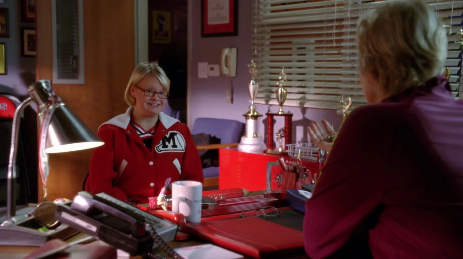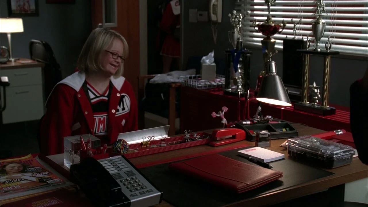 In Ungeküsst, kommt sie nach dem Auftritt Start Me Up/Livin' On a Prayer von den Glee Mädels mit einer Notiz von Sue, worin steht, dass er sofort in die Aula kommen soll.