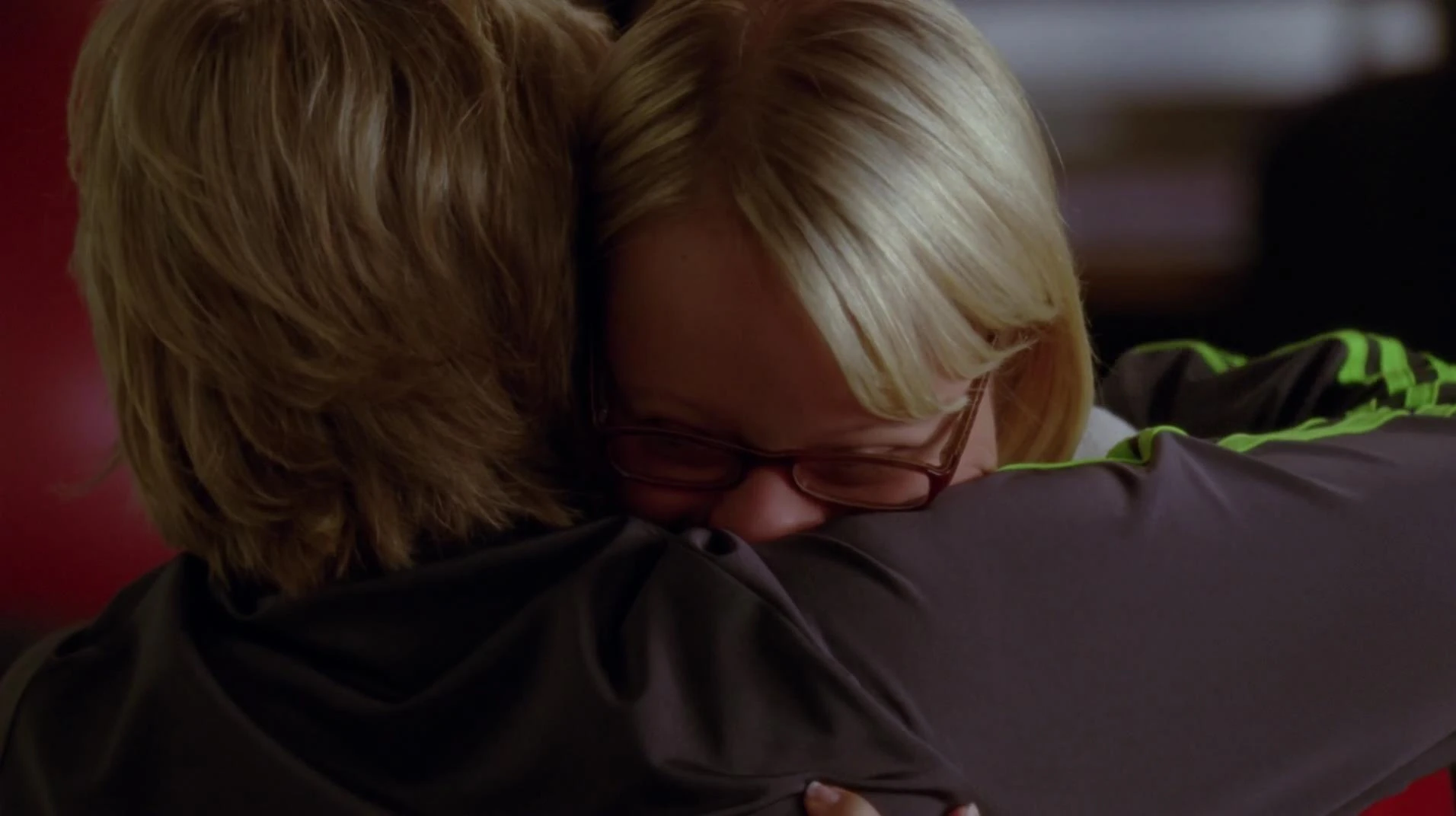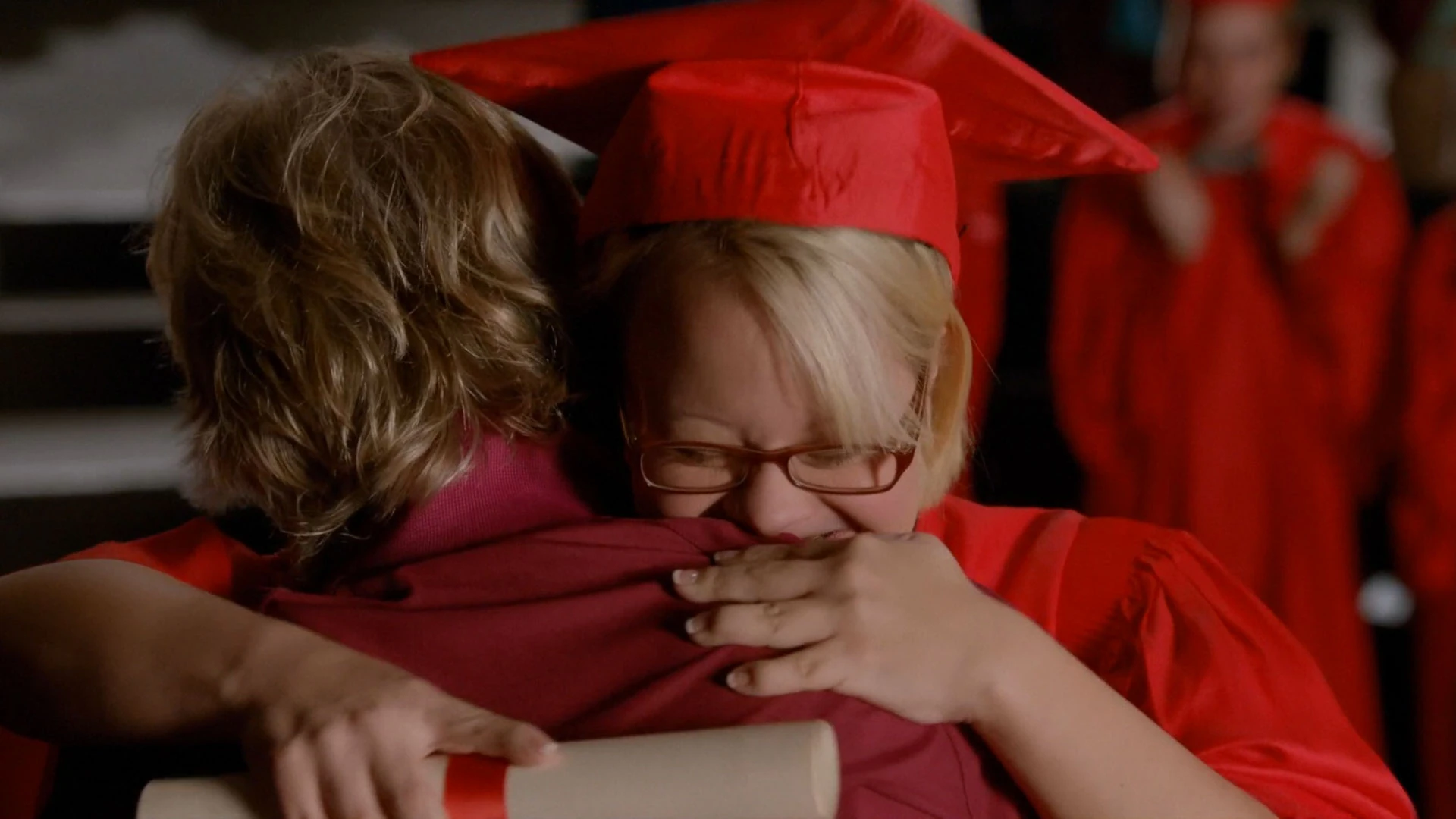 tig gemacht zu werden und andere sich über sie lustig machen, doch Artie versichert ihr, dass sie Professoren, Berater und Freunde hat, die sie unterstützen werden und der einzige Weg sich zu entwickeln, der ist, sich seiner Angst zu stellen und weiter zu machen. Er erinnert sie daran, dass ihre alten Freunde ebenso für sie da sind, wobei er einer davon ist und nimmt sie in den Arm. Gemeinsam gehen sie später auf die Universität in Cincinnati und sehen sich am Campus um. Sie gehen auch in eine Klasse, die aus Leuten mit Down-Syndrom besteht und Becky wird angeboten, daran teilzunehmen, was sie auch macht. Ein Schüler baggert sie an, doch sie macht ihm gleich klar, dass sie nicht interessiert ist und lächelt Artie dankbar dafür, dass er sie überredet hat, ihn zu begleiten, an. Sue möchte von ihr später wissen, wie ihre Tour war und Becky antwortet zuerst, dass sie denkt, dass er ok war. Sie erzählt, dass sie Mathe nicht nehmen muss und ein anderer für sie die Notizen macht sowie die Möglichkeit hat, Fotografie zu nehmen. Becky sagt ihr dann die Wahrheit, nämlich dass die Tour