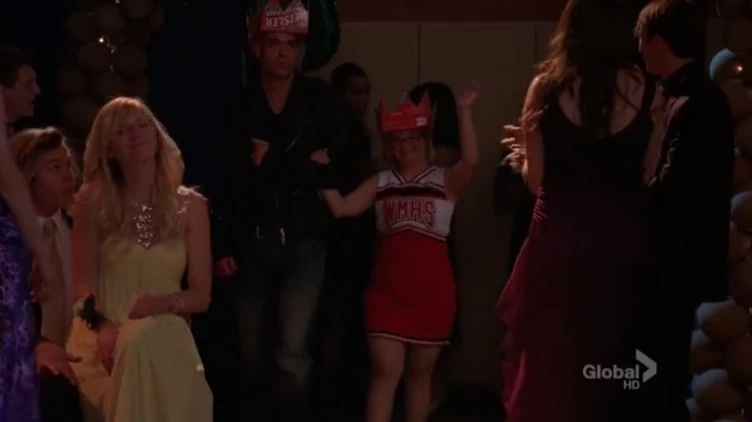 schneidet Puck aus einem Sixpack-Karton zwei Kronen für sie und krönt sie zur Anti-Abschlussballkönigin, während er der König ist. Gemeinsam gehen sie dann doch noch auf den Abschlussball und sie winkt, wie sie es geübt hat, der Menge zu. Ihre innere Stimme sagt dabei, dass sie es geschafft hat und es ihr diesmal nichts ausmacht, dass sie von allen angestarrt wird. Die beiden schmieden einen Plan die Bowle zu punschen, der so aussieht, dass Becky Sue ablenkt, während Puck den Alkohol untermischt. Daraufhin tanzt sie mit ihm und ist überrascht, wenn Quinn aus ihrem Rollstuhl aufsteht, klatscht aber anschließend für sie.