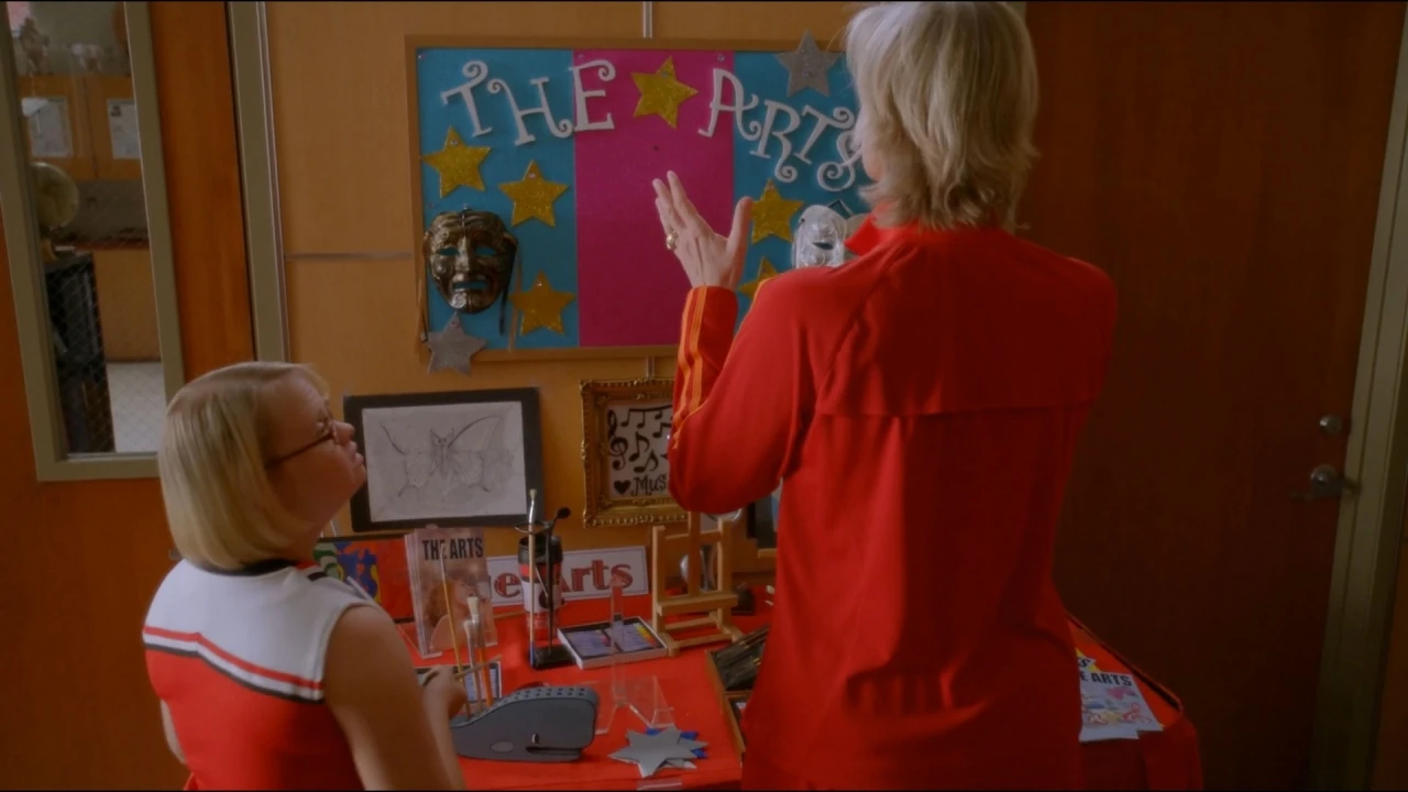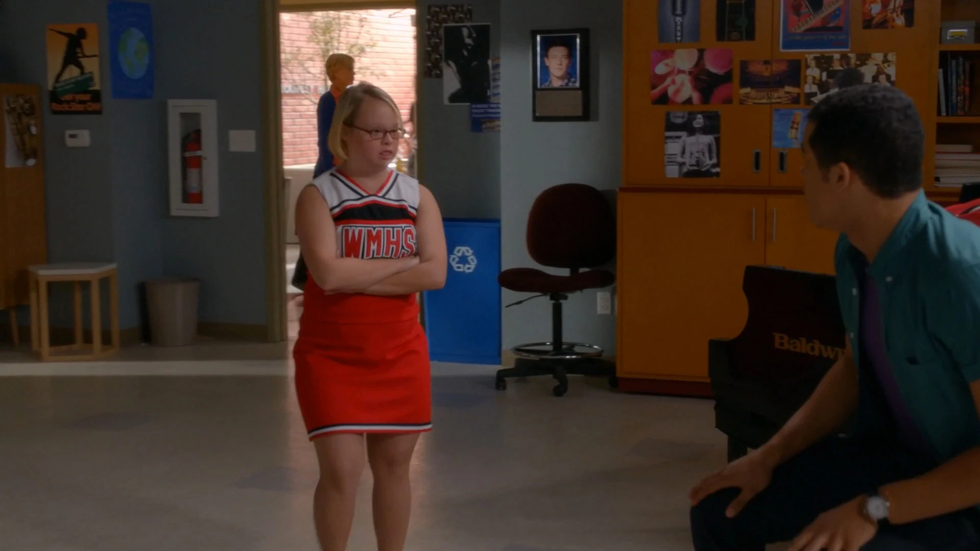 will, was sie plant nach der High School zu tun. Anstatt zu antworten, fragt sie ihn, was er machen wird, worauf er ihr von seinen Plänen erzählt. Becky hält nicht viel davon und meint, dass Colleges für Trottel sind. Artie erzählt ihr, dass er nach Schulen, die gut für Leute mit Behinderungen sind, gesucht hat und ihm dabei aufgefallen ist, dass sehr viele von ihnen Programme für geistig Behinderte anbieten. Er möchte ihr helfen, etwas Passendes für sie herauszusuchen, doch ehe Becky darauf etwas erwidern kann, taucht Sue hinter ihm auf und schiebt ihn weg. Sie will wissen, was er da macht und er antwortet, dass er nur sicher gehen will, dass Becky sich ihrer Optionen bewusst ist, wie auf das College zu gehen und einen Job anzunehmen. Sue erklärt ihm, dass sie bereits einen Job als ihre "Beckretärin" hat und sagt ihm, dass er sich aus den Dingen heraushalten soll, von denen er nichts weiß. Artie hält sich aber nicht daran und sucht Becky auf, um ihr Broschüren von einigen Colleges zu geben. Er ermutigt sie dazu, ihre Möglichkeiten abzuwägen und äußert, dass sie alles sein kann, was sie will. Zunächst scheint sie angetan davon zu sein, da zum Beispiel einige Colleges auch Cheerleading in ihren Programmen haben, doch gleich darauf