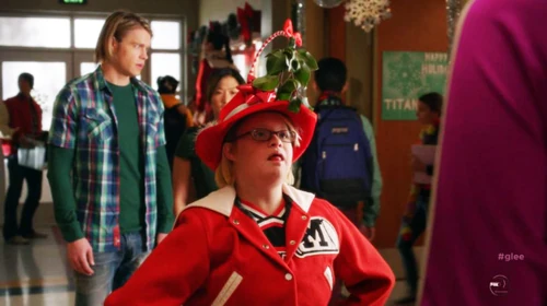 rummachen können. Die beiden sind geschockt, worauf Tina ihr sagt, dass ihr Verhalten außer Kontrolle geraten ist, weil Sue ihr eine Sonderbehandlung gibt, was sie denken lässt, dass die Regeln nicht für sie gelten. Sie hingegen erwidert, dass das Diskriminierung ist, bevor Sue einschreitet und ihr sagt, dass sie statt einem Mistelzweig Giftsumach an ihrem Hut trägt und sie ins Krankenzimmer schinkt. Becky fragt sie, ob sie ihr Auto haben kann, was sie bejaht und lässt sich von ihr die Schlüssel geben Als sie weg ist, stimmt Sue Tina und Sam zu, dass sie Becky besonders behandelt hat, wenn sie sie eigentlich wie jeden anderen Schüler auch hätte behandeln sollen und sagt ihnen, dass sie ab sofort ihr Verhalten anpasst und ihr die gleiche Behandlung gibt, wie dem Rest der Schülerschaft. Sue, die die Jurorin beim Dekorierwettbewerb ist, erzählt den New Directions, als sie sich deren Weihnachtsbaum ansieht, dass sie dachte, dass Becky den Preis gewinnen würde, doch sie hat nicht wirklich das Konzept "grün ist gut" verstanden, da sie