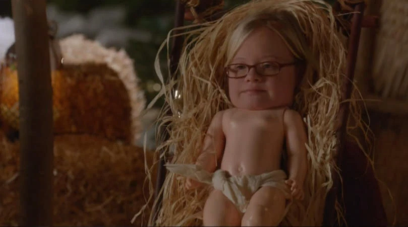 ihren Baum lediglich aus grünen Dingen gebastelt hat, wie Äpfeln, Bananen, verschimmeltes Brot, Bohnen etc. Danach ist sie in Sues Büro und spielt auf dem Xylophon, bevor diese die Vizemeister des Dekorierwettbewerbs verkündet. Becky drückt dabei die Daumen, jedoch ist sie nicht dabei, weshalb sie Sue weinerlich fragt, was mit ihr ist. Sue jedoch sagt ihr nur, dass sie auf ihre Tonlage achten soll und gibt schließlich bekannt, dass der Glee Club gewonnen hat. Becky ist außer sich und schmeißt in ihrer üblichen Art das Xylophon auf den Boden. Als Sue ihr deswegen einen vielsagenden Blick zuwirft, zuckt sie nur mit den Schultern. Später gibt sie Tina und Sam Geschenke und wünscht ihnen frohe Weihnachten. Es stellt sich heraus, dass es sich dabei um ihre Milchzähne handelt, welche die zwei an die reine, unschuldige Liebe von Baby-Jesus erinnern soll. Sie bedanken sich und teilen ihr mit, dass es ihnen leid tut, dass sie nicht gewonnen hat. Sie entgegnet, dass sie sich noch immer von Sues Kritik erholen muss, worauf eine Rückblende folgt, wie diese zu ihrem Werk äußert, dass sie Beckys eigene Interpretation