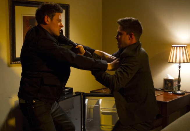 sagen, da er auf das hier nicht stolz ist, doch sie meint, dass es jemand Wichtigeren gibt, den er zu überzeugen hat, worauf Finn den Raum betritt. Nachdem sie sie allein lässt, meint Brody zu ihm, dass er das aufklären kann, doch von ihm wird nur verlangt, dass er aus Rachels Leben verschwinden soll. Er sagt Finn dass er sie liebt, welcher erwidert, dass sie aber doch noch gar nicht weiß, wer er ist, worauf Brody ihn packt und drängt, ihr nichts zu sagen. Dieser jedoch schlägt ihm ins Gesicht, worauf die beiden sich prügeln und dabei das Hotelzimmer demolieren. Brody liegt dann am Boden, wo Finn ihn festnagelt und ihm sagt, dass er sich von seiner zukünftigen Ehefrau fernhalten soll.