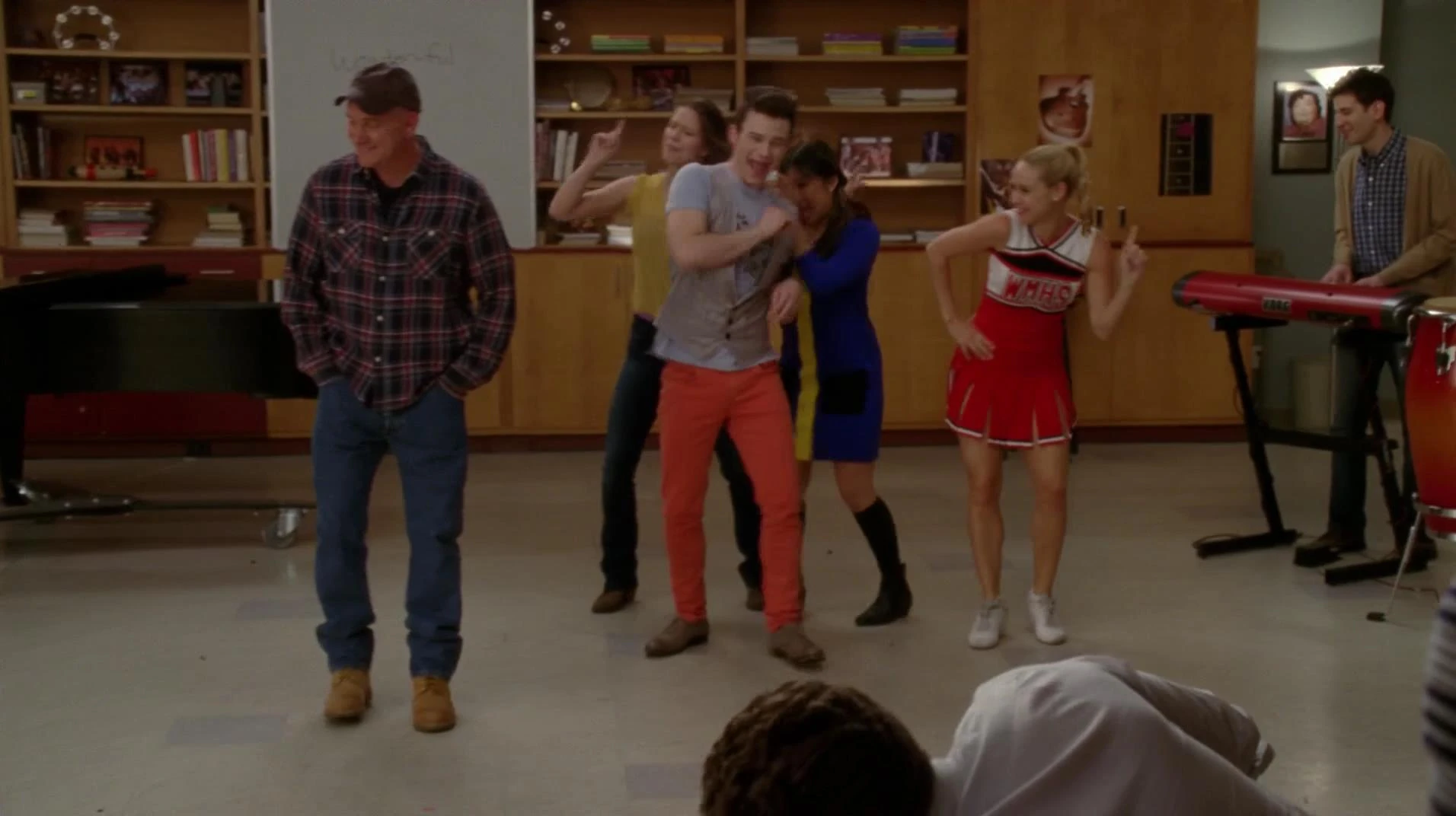In Der Sue Sylvester Shuffle sieht man Burt, Carole, Kurt und Blaine dabei, wie sie bei Finns Footballspiel jubeln, und später klatschen sie zu der Performance von Thriller/Heads Will Roll.