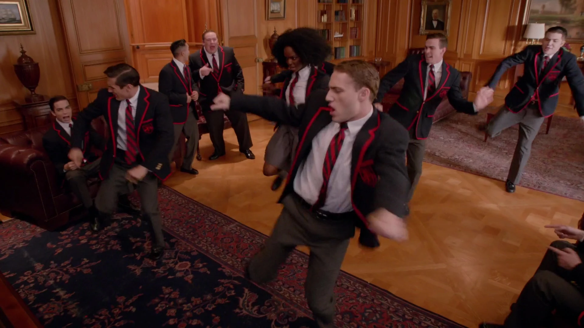 sie auf Tonband aufgenommen hat und später den New Directions vorspielt, um Sebastian so dran zu kriegen. Kurt ist jedoch dagegen und lädt die Warblers stattdessen an die McKinley ein, um sie daran zu erinnern, dass sie Showchöre sind und zusammenhalten sollten. Daraufhin performen die New Directions Black or White, wobei alle Warblers, bis auf Sebastian, mit einsteigen. Am Ende ist er wenig begeistert von der Performance, weshalb Nick ihm sagt, dass er es aufgeben soll. Er erinnert ihn jedoch daran, dass sie genau mit der Einstellung damals, die Regionals verloren haben und wird dann von Artie aus der Aula geworfen.