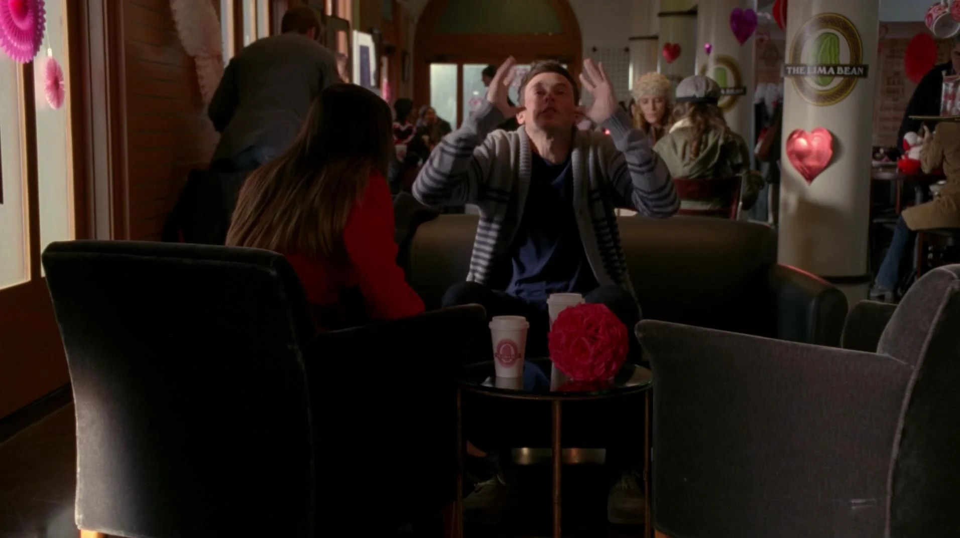 - Das Glee-Logo in der Introkarte ist, wie bei den anderen Valentinsfolgen, rosa.