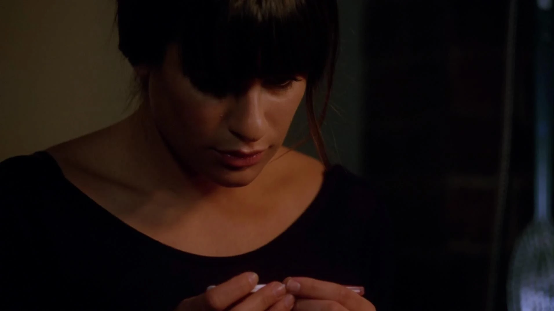 - Als Quinn und Santana ihre gefälschten Ausweise zeigen und danach ihre Gläser nehmen, sind ihre Nägel nicht lackiert. Als sie sich umdrehen und anstoßen, sind ihre Nägel schwarz lackiert.