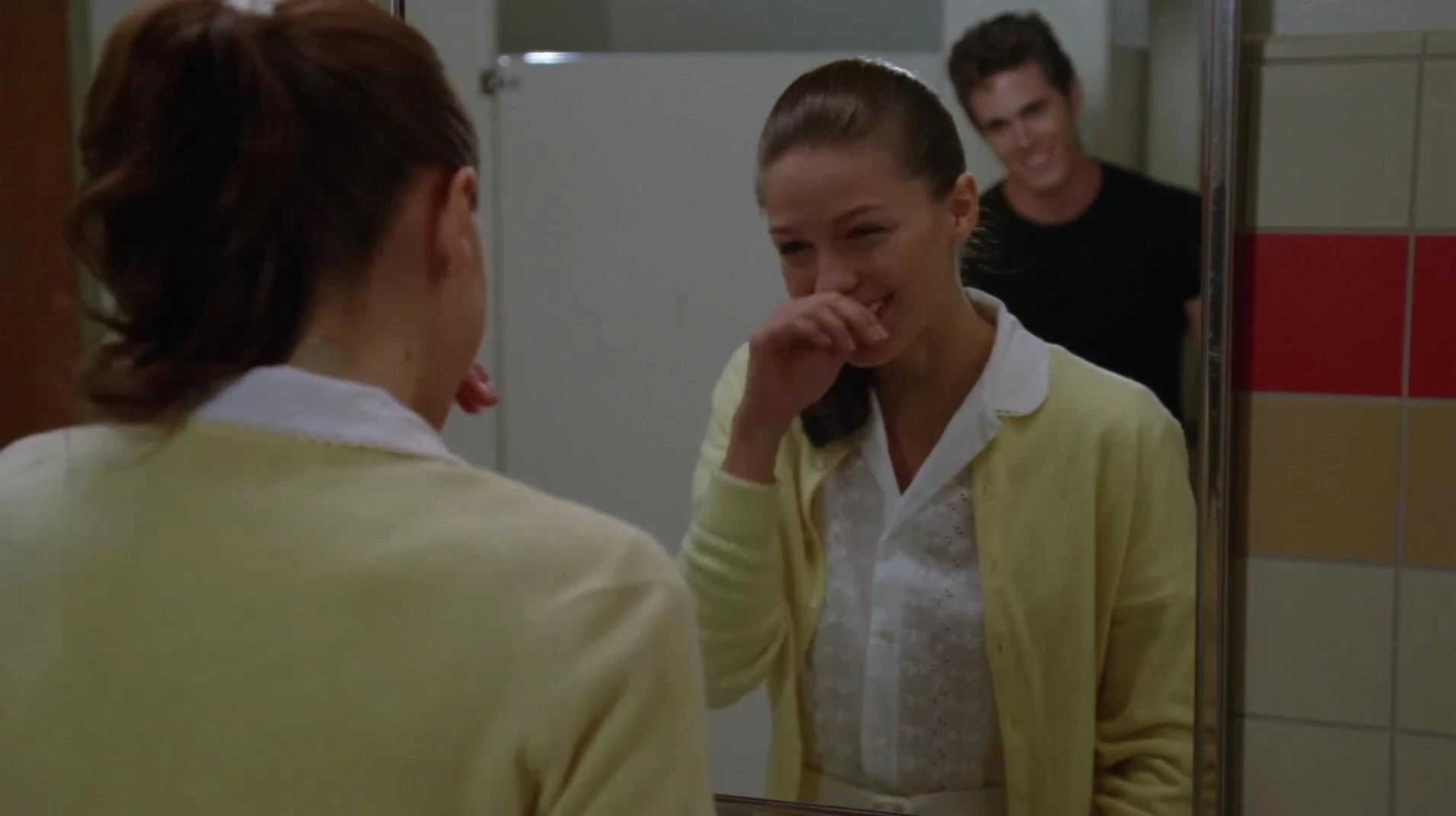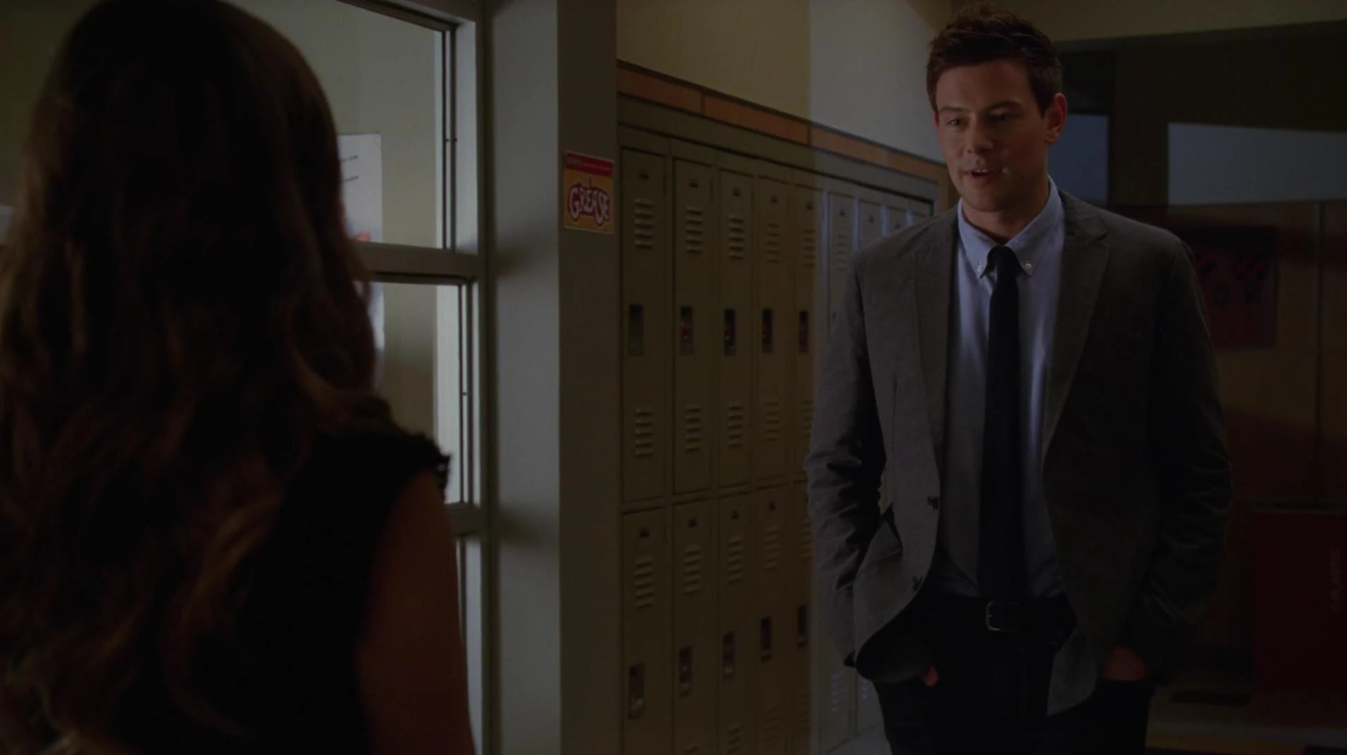 Während Blaine in seiner Rolle als Teen Angel Beauty School Drop Out singt, erblickt er Kurt im Publikum und hat mit sich zu kämpfen, bringt seinen Auftritt aber souverän zu Ende. Derweil ist Ryder auf der Suche nach Marley und findet sie auf der Toilette, wo sie gerade versucht, sich zu übergeben. Ryder macht ihr deutlich, dass dies keine Lösung ist und kann sie etwas beruhigen. Er erklärt außerdem, dass er es nicht besonders schön findet, wenn er jemanden küsst, der nach Erbrochenen riecht. Marley macht sich Mut und singt, Look At Me, I'm Sandra Dee singt, wobei sie sich auf ihren Auftritt vorbereitet.