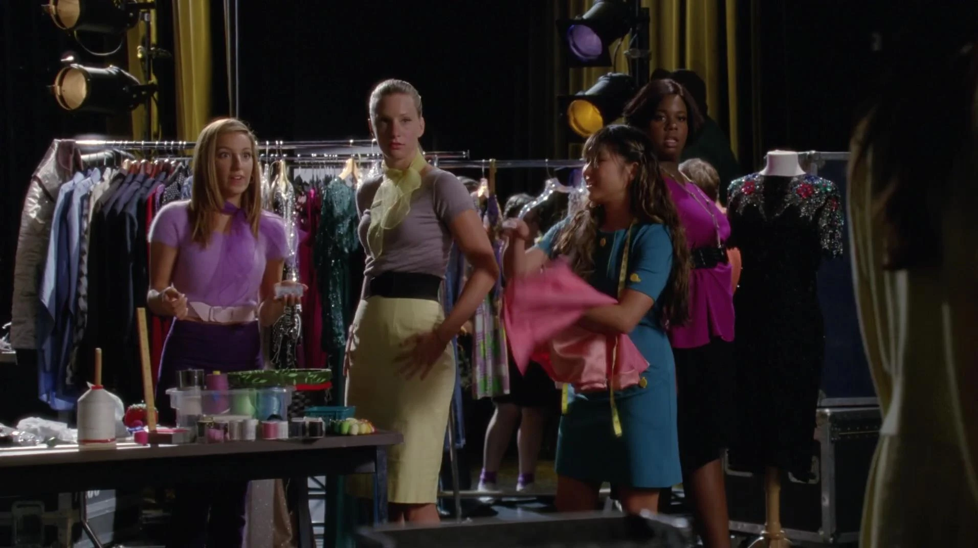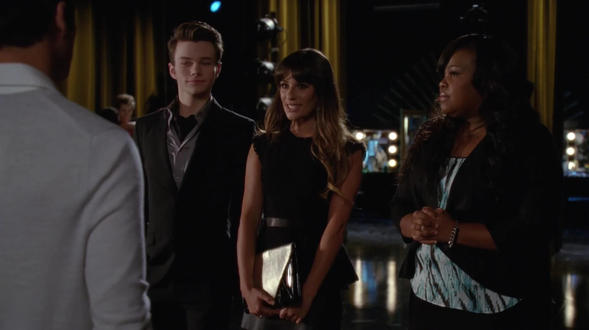 Rachel und Kurt sind an der McKinley und treffen auf Mercedes. Sie tauschen sich sofort aus und Mercedes schlägt vor, sie Backstage zu bringen, damit alle Bescheid wissen, dass sie extra für das Musical gekommen sind. Dort hat Marley wieder Schwierigkeiten in ihr Kleid zu kommen und Kitty erinnert sie erneut an die Variante, sich zu übergeben und so Pfunde zu verlieren. Rachel und Kurt treffen kurz darauf auf Blaine und Finn und halten ein bisschen Smalltalk. Die Stimmung untereinander ist aufgrund der geschehenen Vorkommnisse angespannt, weshalb Finn sie unterbricht und sich für ihr Kommen bedankt. Als sie sich entfernen, überlegt Kurt, ob er nicht doch besser wieder gehen sollte, aber Rachel sagt ihm, dass sie für ihn da ist und sie es jetzt durchziehen.