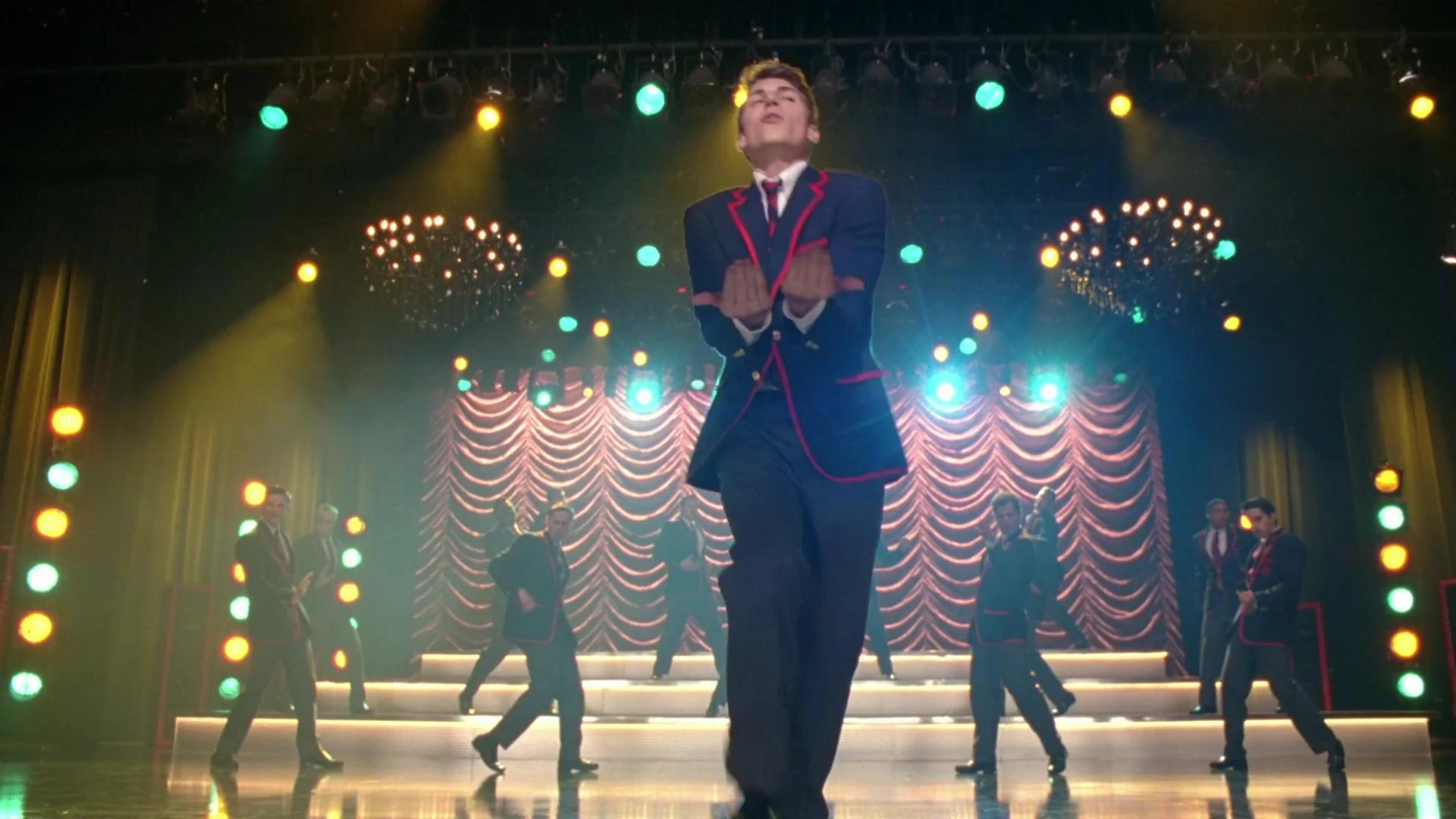 ziemlich sicher, dass die Warblers dieses Jahr die Sectionals gewinnen werden und nicht möchte das eine Dalton Legende (Blaine) zu den Verlierern gehört. Hunter erklärt, dass die New Directions ihren Pokal wieder bekommen, wenn Blaine an seine alte Schule wechselt und bringt ihn dazu einen Dalton Blazer anzuziehen, welchen Sebastian, Jeff, Nick und ein vierter Warbler reinbringen. Nachdem Blaine mit den Warblers noch den Song Dark Side gesungen hat, will er den Blazer zurückgeben doch Hunter gibt ihm zu verstehen das dieser sowieso IHM gehöre. Am Ende der Folge entdeckt Sebastian zusammen mit Hunter, dass die Nationaltrophäe der New Direcktions verschwunden ist und ein Dalton Blazer mit einem Zettel "Nein, danke" hinterlassen wurde. Die beiden treten auf den Balkon und sehen noch Sam und Blaine in ihren Superheldenkostümen mit der Trophäe davon laufen.