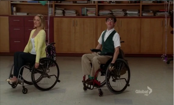 Vor dem Lehrerzimmer versucht Artie Quinn dazu zu bringen, die "steilste Rampe von Lima" zu erklimmen und feuert sie den ganzen Weg nach oben an, meinend, dass es dasselbe ist, als würde sie ein Kind zur Welt bringen. Nachdem sie es geschafft, rollen Artie und Quinn den Schulflur entlang und er meint, dass sie, wenn sie mit den anderen in den Freizeitpark geht, nur traurig wird, da sie im Rollstuhl festsitzt. Er schlägt ihr stattdessen vor in einen Skatepark zu gehen, zu was Quinn zustimmt.