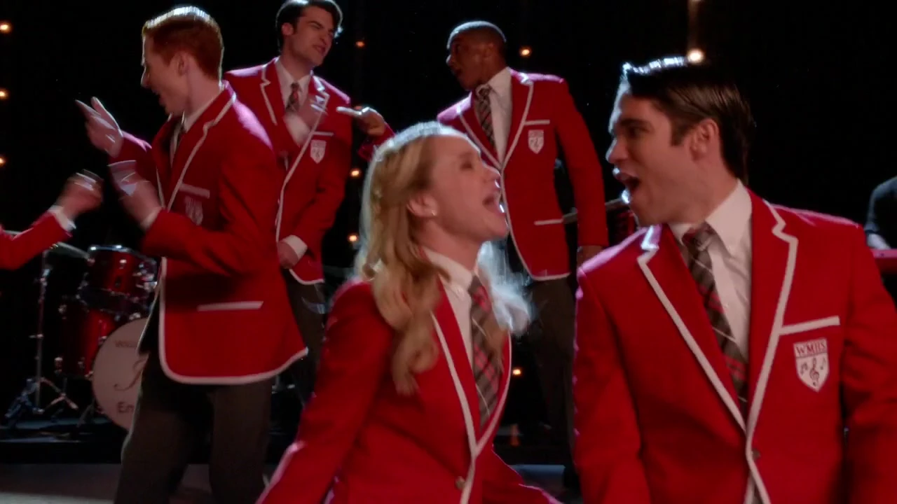 Wettbewerben die Kostüme der New Directions tragen. Die Warblers sind dagegen, da sie ihnen nicht gefallen und Will macht klar, dass sie nun auf die McKinley gehen und ihre Blazer los werden müssen. Skylar antwortet, dass sie dankbar sind, mit ihnen zu performen, sie sich aber nicht ausgesucht haben, hierher zu kommen und die ihnen die Blazer etwas bedeuten. Sie werden von Beiste unterbrochen, der ihnen mitteilt, dass sie größere Probleme haben, da Sue der neue Coach von Vocal Adrenaline ist. Sie ist mit den New Directions, Warblers, Blaine, Kurt, Rachel und Sam in der Aula, wo Sue und Will The Final Countdown performen und geschockt. Später performt sie mit der neuen Supergruppe in Warbleroutifts, allerdings ohne Blazer, in der Aula Rise, als Blaine mit roten Blazern hereinkommt, die die Schulen beider Chöre repräsentieren. Die Gruppe singt und tanzt zusammen und ist endlich als Team vereint. Blaine gesellt sich zu Kurt und Rachel und die drei sind sichtlich stolz auf ihre Gruppe, die am Ende des Songs die Hände heben, als Zeichen, dass sie auferstanden sind.