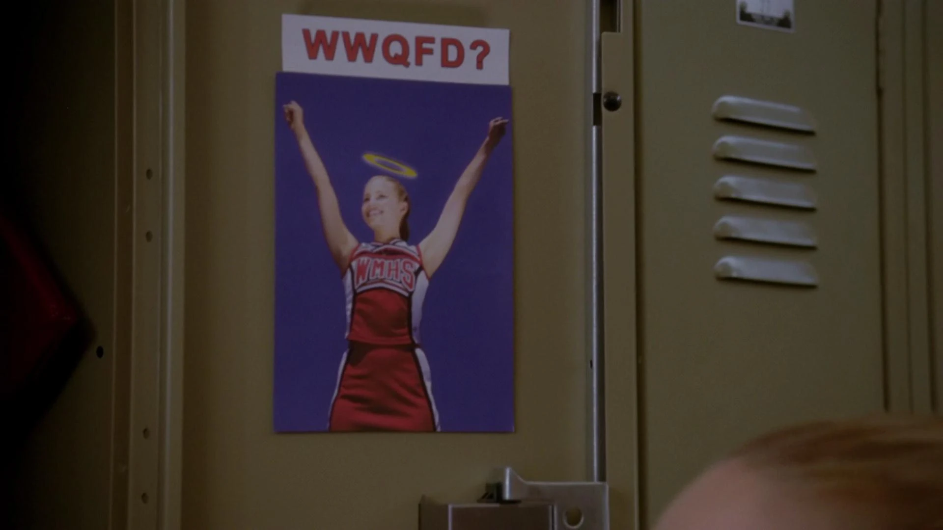 ist. Kitty zeigt ihr ihren Spind, in dem ein Foto von ihr hängt, mit der Überschrift "was würde Quinn Fabray tun", da sie sich das jeden Tag fragt. Diese meint, dass es wundervoll für sie ist, dass sich einige noch an sie erinnern und Kitty erzählt ihr, dass die Mädchen, besonders sie, es anstreben wie sie zu sein. Als sie gefragt wird, was mit Marley los ist, lügt sie, dass diese "süß wie Honig" ist und sie versucht, ihr eine gute Freundin zu sein, doch seit sich an Jake "ranschmeißt" auf Abwegen ist. Kitty bedauert das und ergänzt, dass man sagt, dass er Marley dazu drängt, für