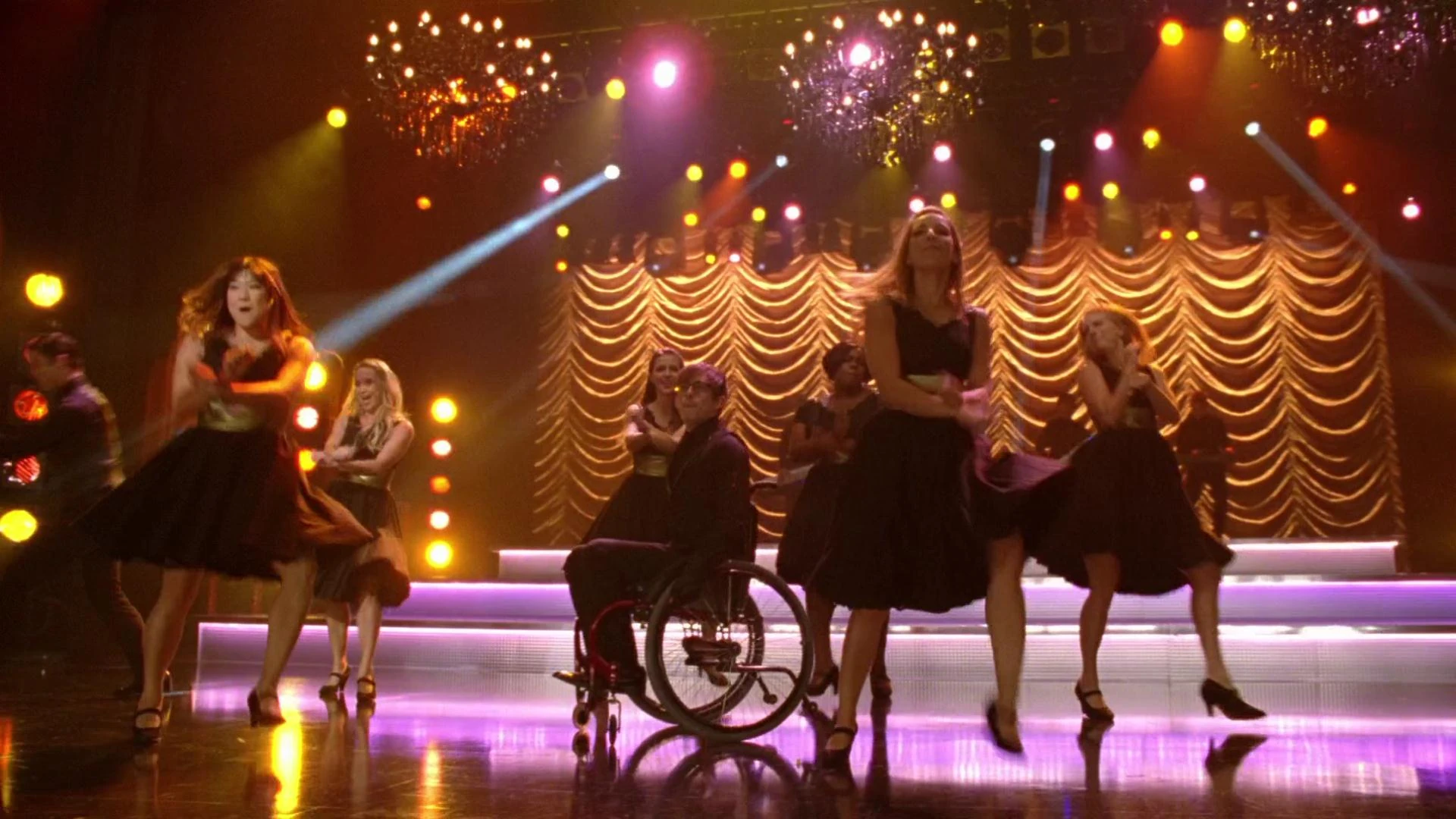 nachdem die New Directions zu den Siegern erklärt wurden. Im Chorraum erzählt Kitty, dass sie gegen die zwei besten Chöre des Staates angetreten sind, die mit dem Gefühl, dass ihre nun Genitalien zwei Zentimeter kürzer sind, nach Haus gehen, nachdem sie diese vernichtet haben. Kitty macht auch klar, dass sie sich an ein oder anderer Stelle über die sie lustig machen wird, aber nie hören möchte, die die Dinge, die sie als Team tun, herabzusetzen. Kurt fragt sie anschließend, ob sie den Countdown zählen möchte, was sie auch möchte und feiert dann mit den anderen im Showkreis.