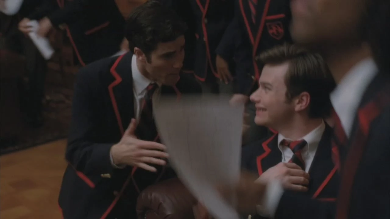 so die New DirectionsBeim nächsten Treffen der Warblers kommt es zu einer Diskussion über die Songs und welche für Blaine am besten geeignet sind. Der unterbricht sie und sagt, dass er es leid ist, dass sich die anderen zu sehr auf seine Stimme verlassen und sie nie schlagen geschweige denn die Regionals gewinnen werden. Aus diesem Grund schlägt er vor, ihre Eröffnungsnummer neu zu arrangieren und sie zu einem Duett zu machen, was die anderen Warblers ziemlich aufbringt. Er versucht sie zu beruhigen, in dem er meint, dass nicht noch mehr Stimmen in ihrer Gruppe verhallen sollen, so wie es bei Pavarotti durch dessen Tod schon der Fall war und der das bestimmt nicht gewollt hat. Die anderen sind überzeugt und stimmen darüber ab. Es wird entschieden, dass das Duett gemacht wird und Kurt meint, dass der Rat seinen Namen auf die Auditionliste setzen soll. Blaine entgegnet, dass es keine geben wird, da er dieses nur mit Kurt macht, was diesen sichtlich verwundert. Es wird erneut darüber abgestimmt, wobei die Warblers zu wissen scheinen, dass sich Blaines Gefühle geändert haben, da sie alle ein wissendes Lächeln im Gesicht haben, und entschieden, dass die beiden das Duett singen. Sie klatschen für sie und es ist zu sehen, wie Blaine glücklich mitmacht und Kurt anlächelt.