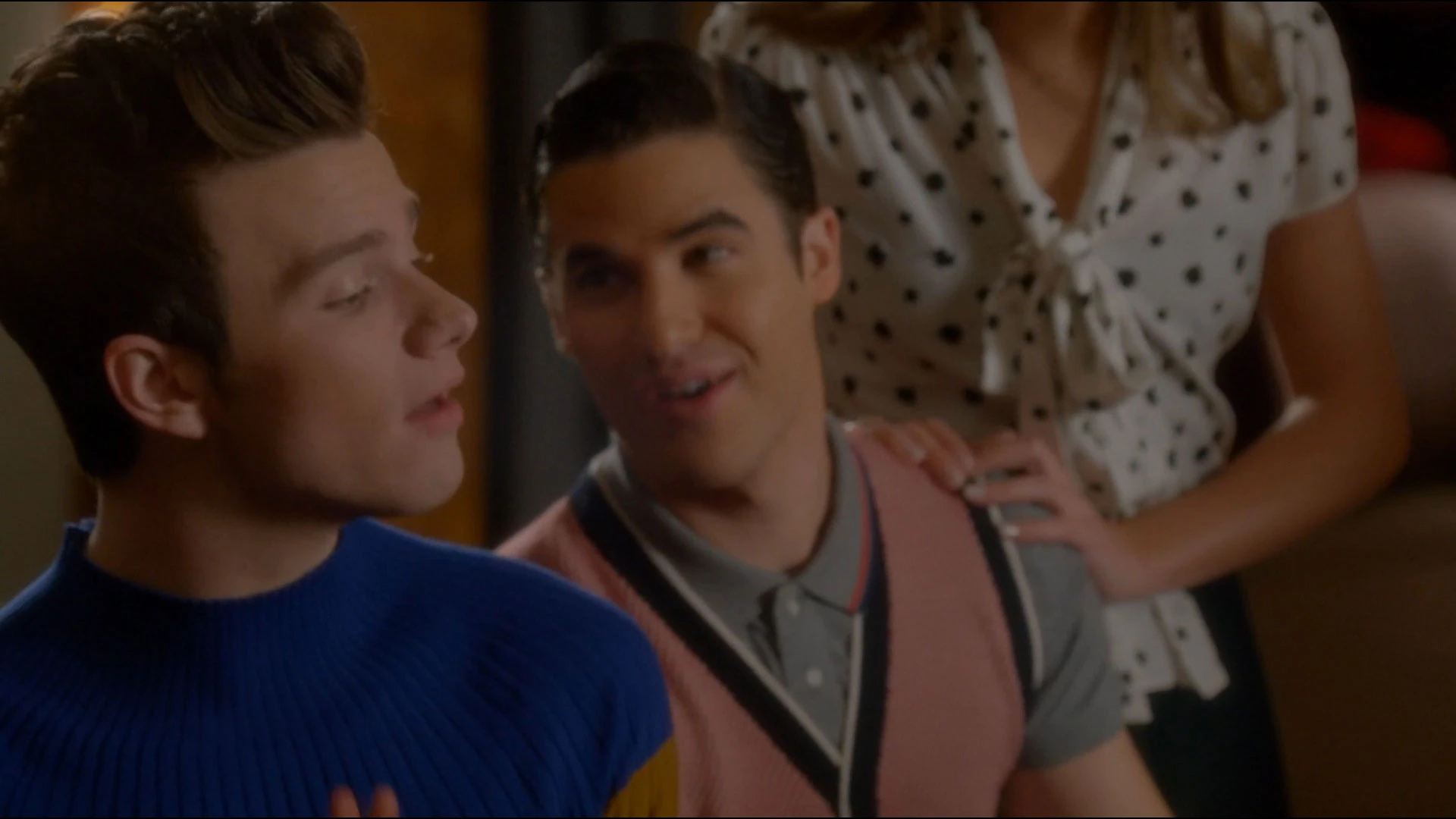 In dieser Folge treffen sich Kurt und Blaine zum ersten Mal. Puck meint zu Erstgenanntem, dass er sich nützlich machen soll, in dem er ihre Gegner auspioniert. Kurt schleicht sich daher in die Dalton Academy und sieht dort, wie alle Schüler aufgeregt irgendwohin laufen. Er hält einen der Schüler, Blaine, an und stellt sich kurz vor, ehe er ihn fragt, was los ist. Dieser erklärt ihm, dass die Warblers eine kleine Kostprobe ihres Könnens geben und nimmt ihn spontan an der Hand, um ihm eine Abkürzung zu zeigen, über welche Kurt einen Endruck von der Schule gewinnt. Sie kommen im Gemeinschaftsraum an, wo besagte Probe stattfindet und Blaine zu den anderen Schüllern geht. Es wird enthüllt, dass er ihr Leadsänger ist und singt mit ihnen zusammen Teenage Dream, dabei immer wieder zu Kurt sehend.