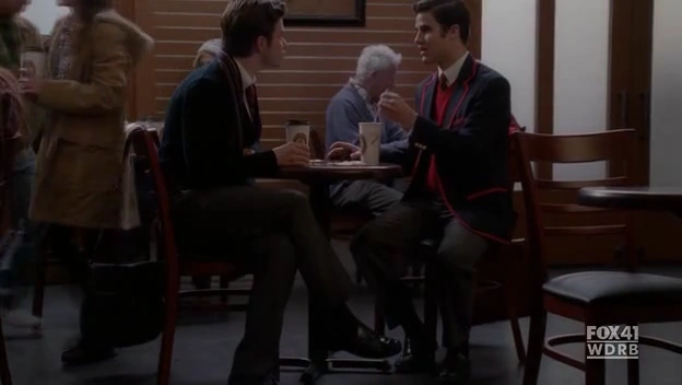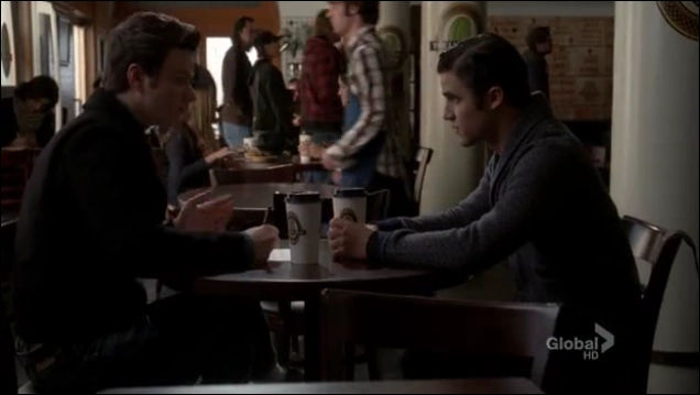 Nach der Performance eröffnen ihm Blaine und zwei andere Mitglieder, Wes und David, dass sie wissen, dass er ein Spion ist. Doch anstatt ihn rauszuschmeißen, laden sie ihn zu einem Kaffee ein und reden mit ihm. Auf Kurts Nachfrage, ob hier alle schwul sind, erzählt Blaine, dass er es ist und Wes und David Freundinnen haben. Wes erklärt Kurt, das ihre Schule eine "Null-Toleranz-gegenüber-Schikanierungen" zeigt und alle gleich behandelt werden. Blaine bemerkt Kurts unglückliche Reaktion darauf und bittet seine Freunde sie allein zu lassen. Er spricht ihn darauf und an und dieser erzählt ihm unter Tränen von den Schikanen an seiner Schule, hervor hebend, dass ein "Neanderthaler" es ganz besonders auf ihn agesehen hat. Blaine widerum berichtet ihm, dass er an seiner ehemaligen Schule ebenfalls fertig gemacht wurde und die Lehrer sich nicht darum scherten. Aus diesem Grund ist er an die Dalton gewechselt und gibt zu, dass er es bereut weggerannt zu sein. Er rät Kurt nicht denselben Fehler zu machen und stattdessen Mut zu beweisen, sich seinen Peinigern zu stellen.