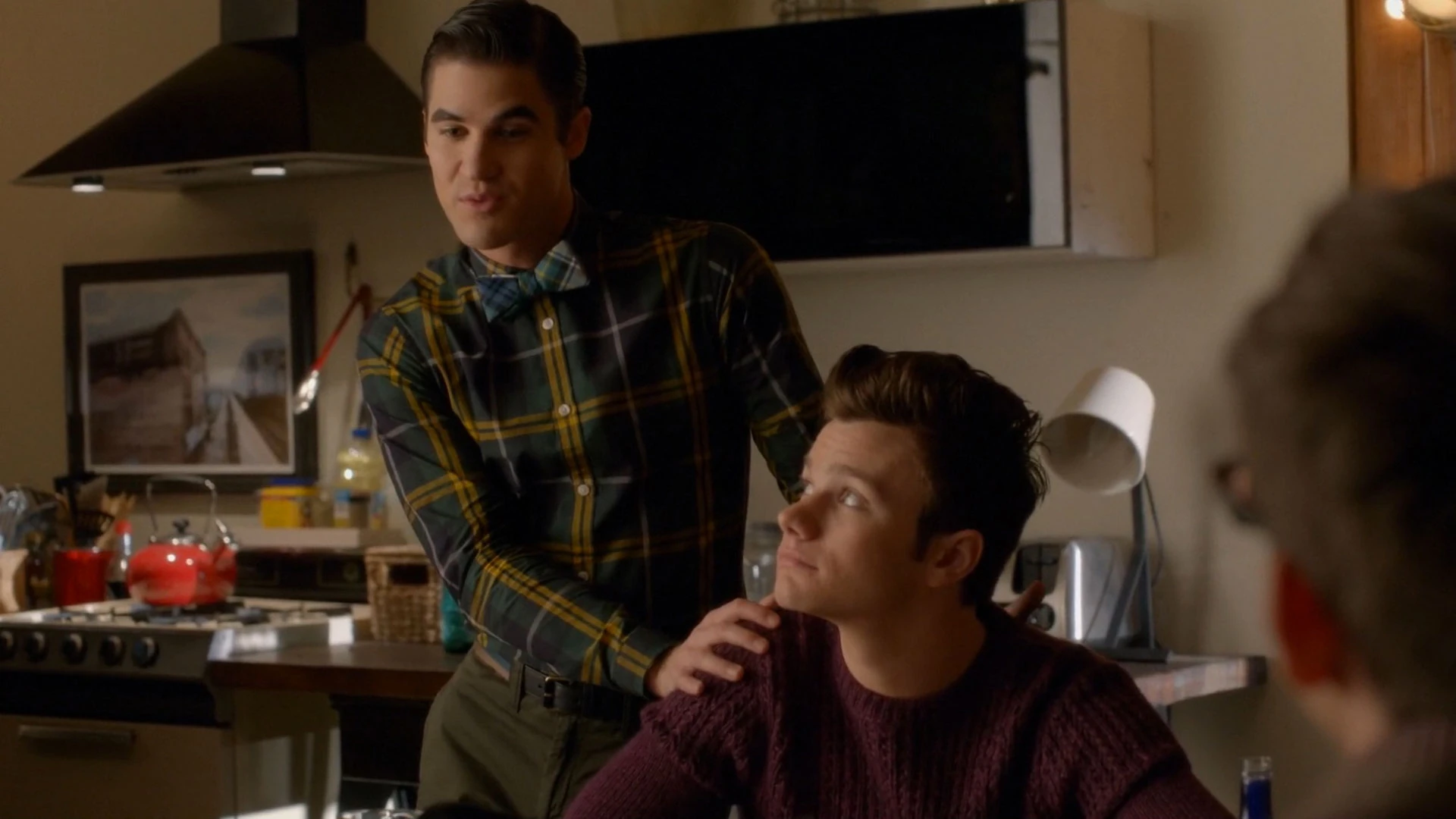Sie sind mit mit Finn und Burt bei den Hudson-Hummels zu Hause, als Kurt runter kommt um ihnen seinen Kilt zu zeigen, welchen er auf dem Abschlussball tragen wird. Sein Bruder findet, dass er gut aussieht, wohin gegen sein Vater und Freund der Meinung sind, dass Kurt ihn nicht tragen sollte, da er sich damit nur zur Zielscheibe für seine Peiniger macht. Blaine äußert aufgrund seiner vergangenen Erfahrungen, dass sie lieber keine unnötige Aufmerksamkeit erregen sollten, worauf Kurt ihm widerspricht und ihm sagt, dass es beim Abschlussball um Spaß und nicht um Angst gehen soll. Daher beschließt er, in dem Kilt zu gehen, egal ob Blaine ihn begleitet oder nicht.