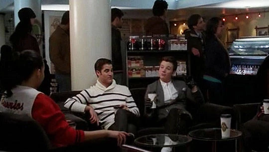 Später treffen sich die beiden mit Rachel und Mercedes zu einem Kaffee im Lima Bean und unterhalten sich über die McKinley Titans. Kurt meint, dass er und Blaine Football lieben, bzw. das bei Letztererm der Fall ist und er Tücher liebt, worauf der Andere kichert.
