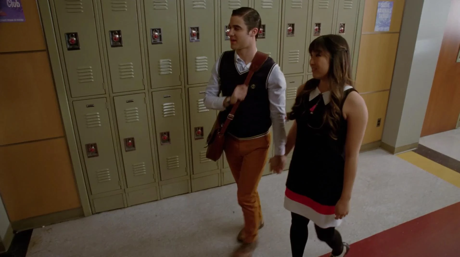 Tina entschuldigt sich bei Blaine und hofft auch auf seine, da es eine Demütigung für sie war, dass er vor den anderen "nein" gesagt hat. Sie glaubt das seine Antwort auf ein schlechtes Erlebniss herrührt, da er mal auf einem Sadie Hawkins Tanz zusammen geschlagen wurde. Blaine sagt ihr aber das der wahre Grund Sam ist. Sie macht ihm den Vorschlag zusammen zum Tanz zugehen, als Freunde.