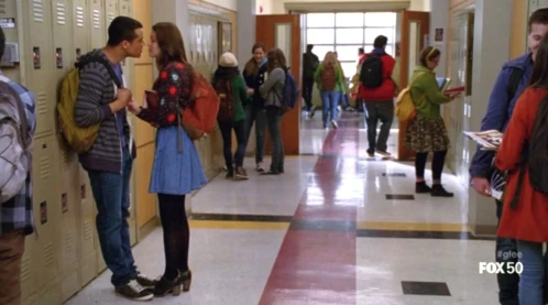 Da die Episode 2012 spielt, sind die beiden noch zusammen, und lächeln und umarmen sich die beiden während sie mit den New Directions Rockin' Around The Christmas Tree singen.