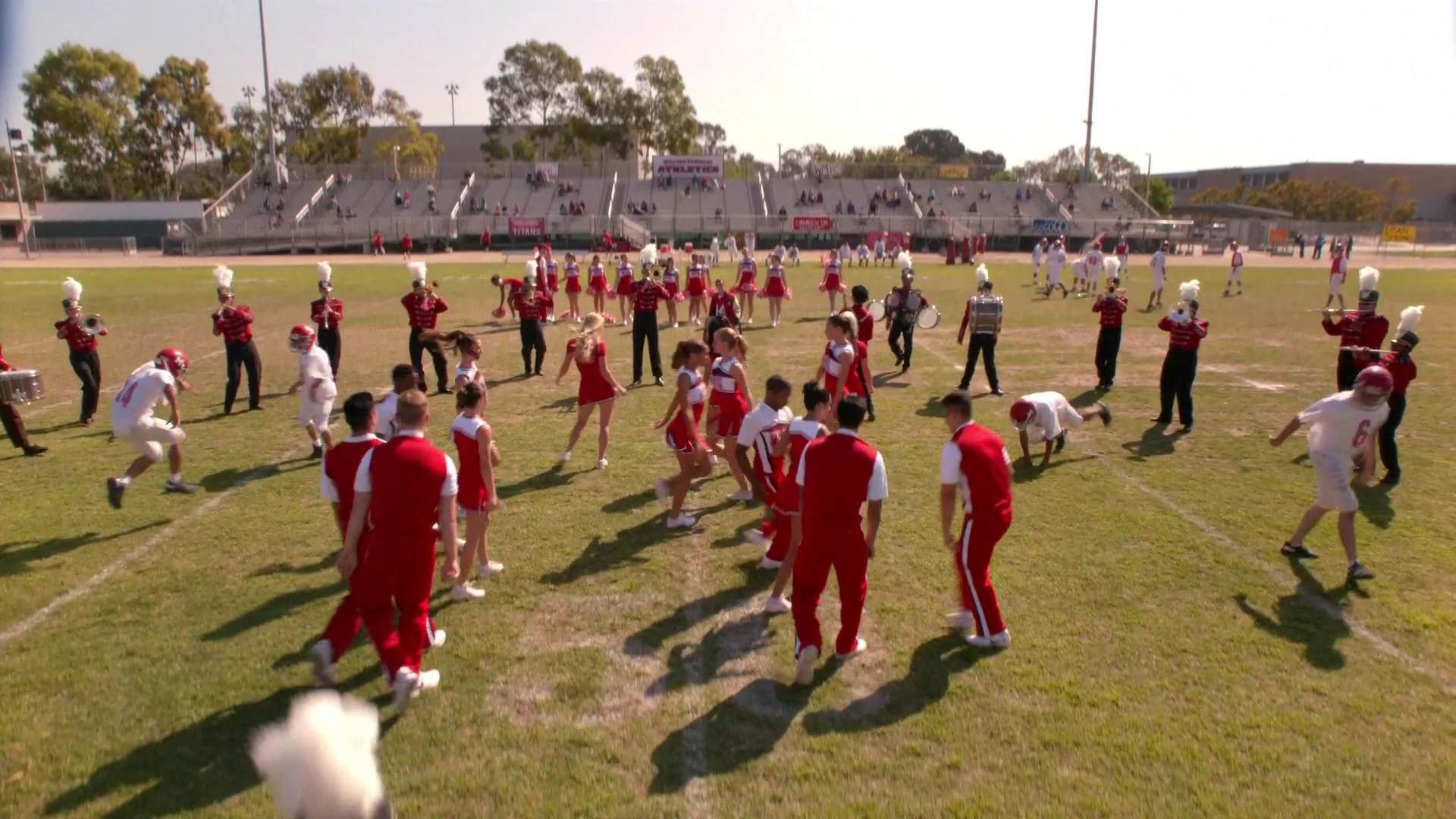 In Homecoming trainieren sie gerade auf dem Footballfeld, als Artie, Brittany, Quinn und Santana mit den Cheerios Problem singen, um neue Mitglieder für den Glee Club anzuwerben