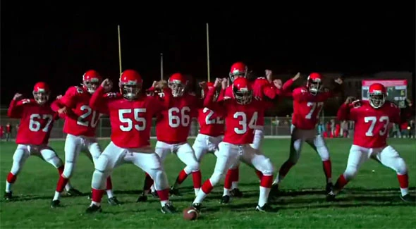 ein. Sie sind dabei ihr Spiel zu verlieren, weshalb Puck die Jungs davon überzeugt, sich dem Footballteam anzuschließen. Sie stimmen alle, bis auf Karofsky, zu und performen dann mit den anderen und Brittany, Quinn und Santana Thriller/Heads Will Roll. Während der Performance schließt sich ihnen Karofsyk doch noch an und am Ende gewinnen sie die Meisterschaft.