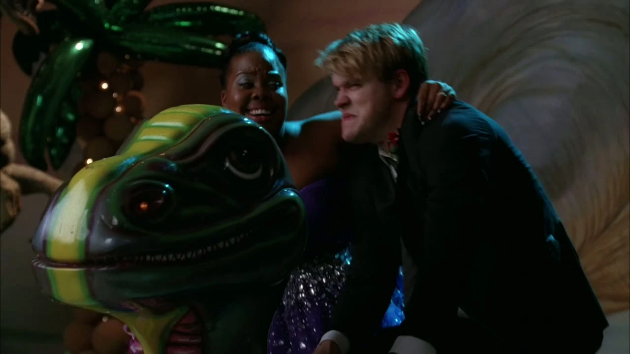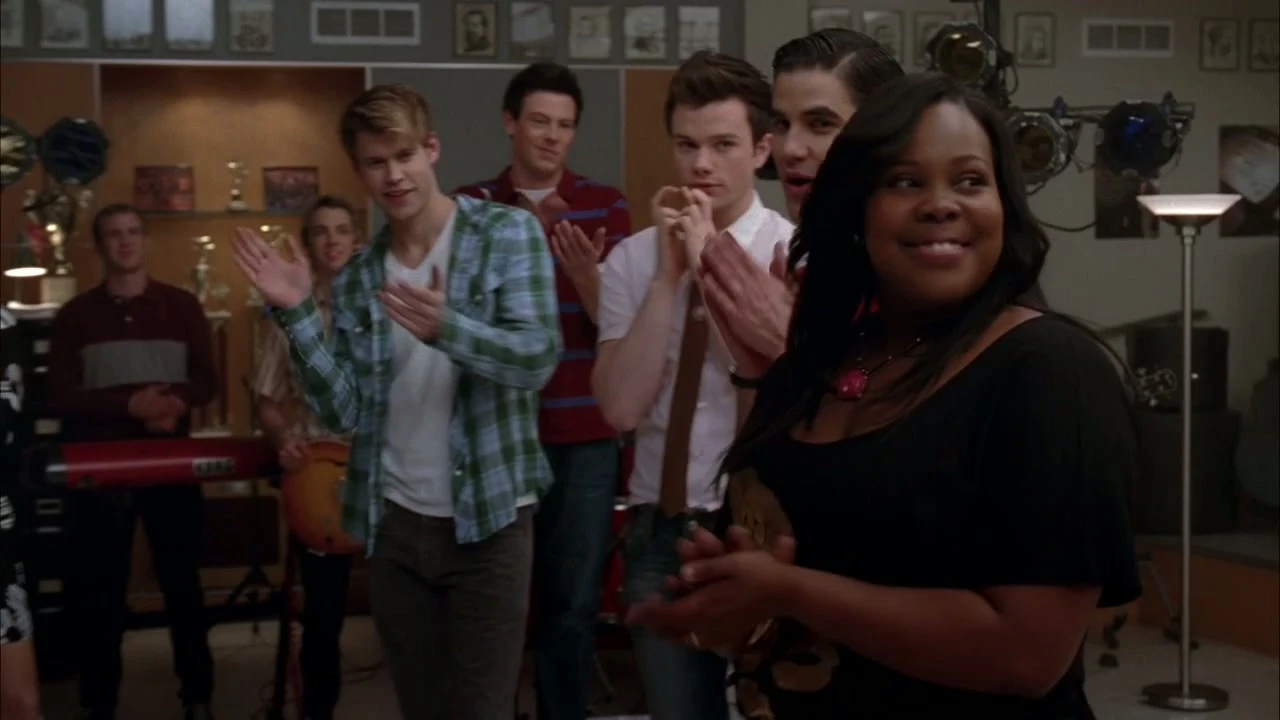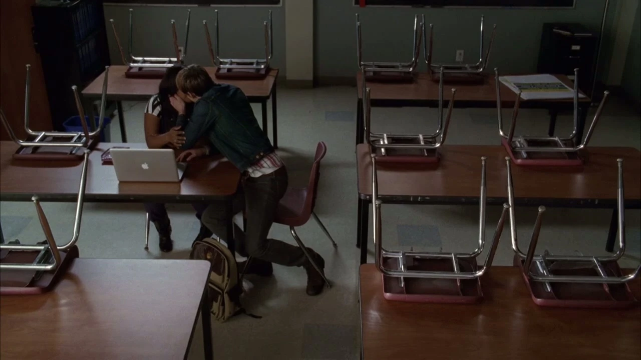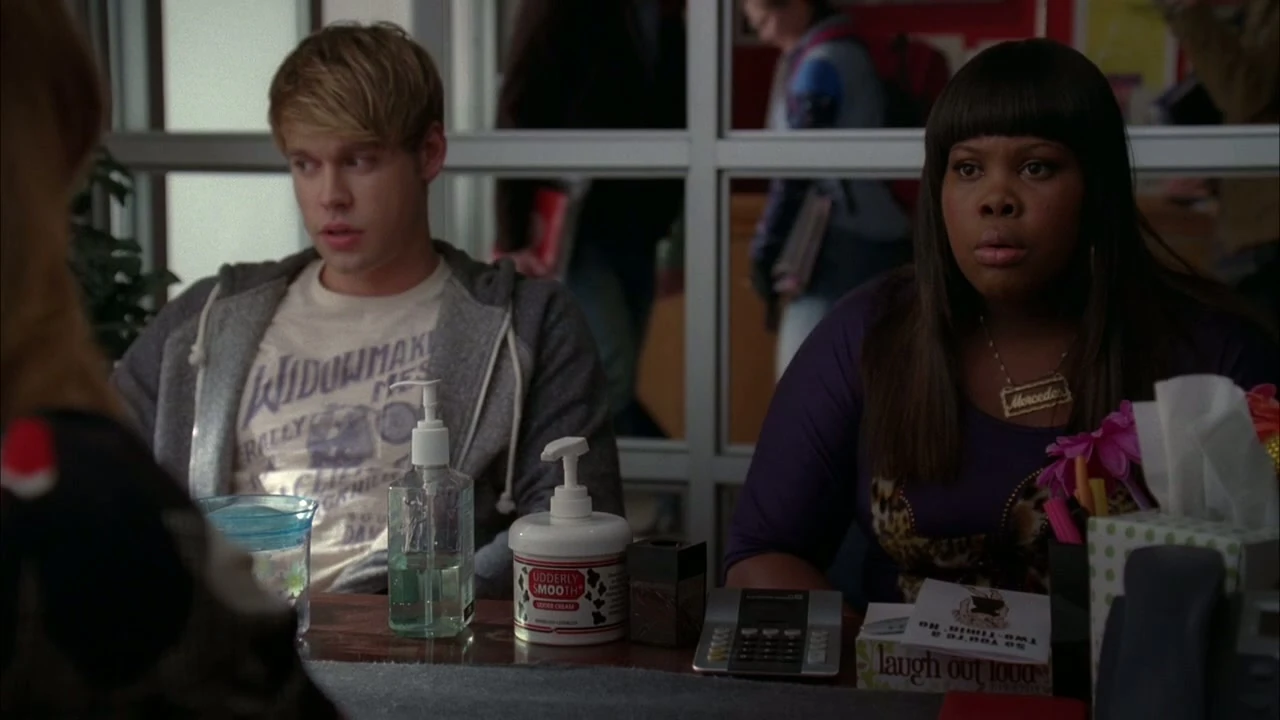 Wenn Sam und Santana im Chorraum offenkunding Zärtlichkeiten austauschen, beobachtet sie Mercedes dabei und will von Tina wissen: "Wann is´n das passiert?".