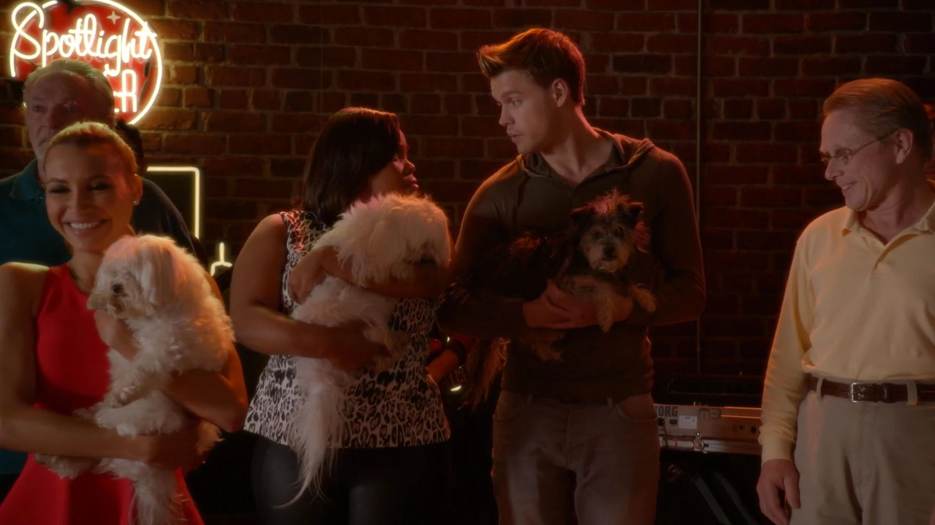 Die beiden sind mit Artie auf Rachels "Broadway Bitches"-Event, wo Mercedes auf Sam einredet, McConaughey in eine Hunderettung zu bringen, da er sich weigert, ihn herzugeben. Anschließend werden sie von Artie auf Rachel aufmerksam gemacht, die sich weigert, einer Dame und ihrem Kind einen dreibeinigen Hund zu geben, weil sie ihn für ihre Fotos braucht.