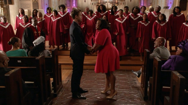 Sam kündigt Mercedes´ Auftritt beim Benefizkonzert mit: "Und nun, Ladys and Gentleman, Mrs. Mercedes Jones" an und gibt ihr danach Standing Ovations.
