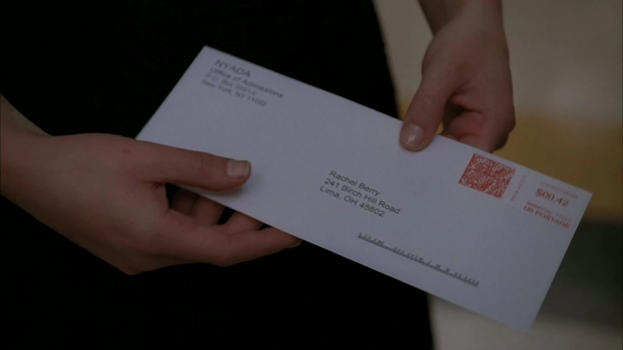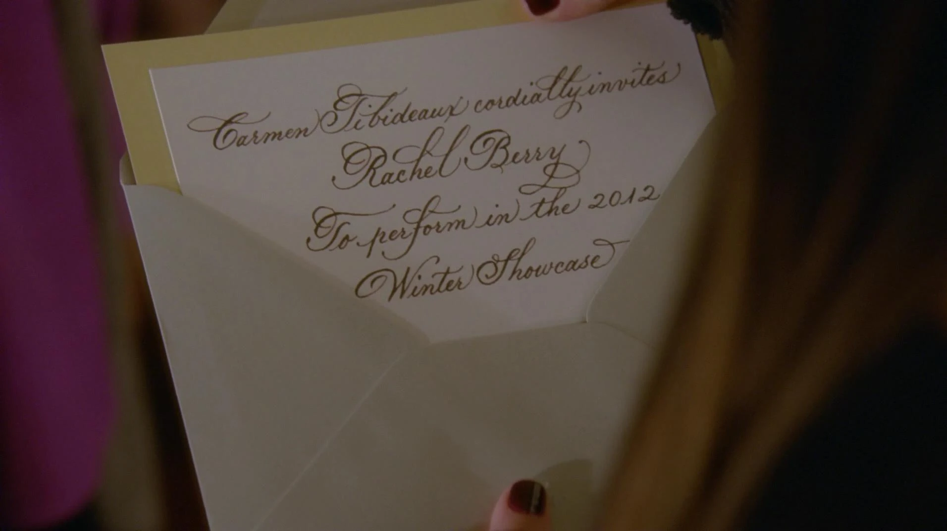 zögert eine Weile ihn zu öffnen, bis er schließlich bereit ist und erfährt, dass er ein Finalist ist. Freudig erzählt er Rachel von den guten Neuigkeiten, welche nicht so glücklich ist, weil sie ihren Brief noch nicht erhalten hat und glaubt, keinen Plan für die Zukunft zu haben und Finn alles ist, was sie hat. Später sucht sie Kurt an seinem Spind auf und zeigt ihm ihren Brief, worin steht, dass sie auch eine Finalistin ist. Auf seine Frage, ob sie es schon Finn erzählt hat, schweigt sie, da sie zuvor eingewilligt hat, ihn zu heiraten und der Brief jetzt ihren Plan über den Haufen wirft.