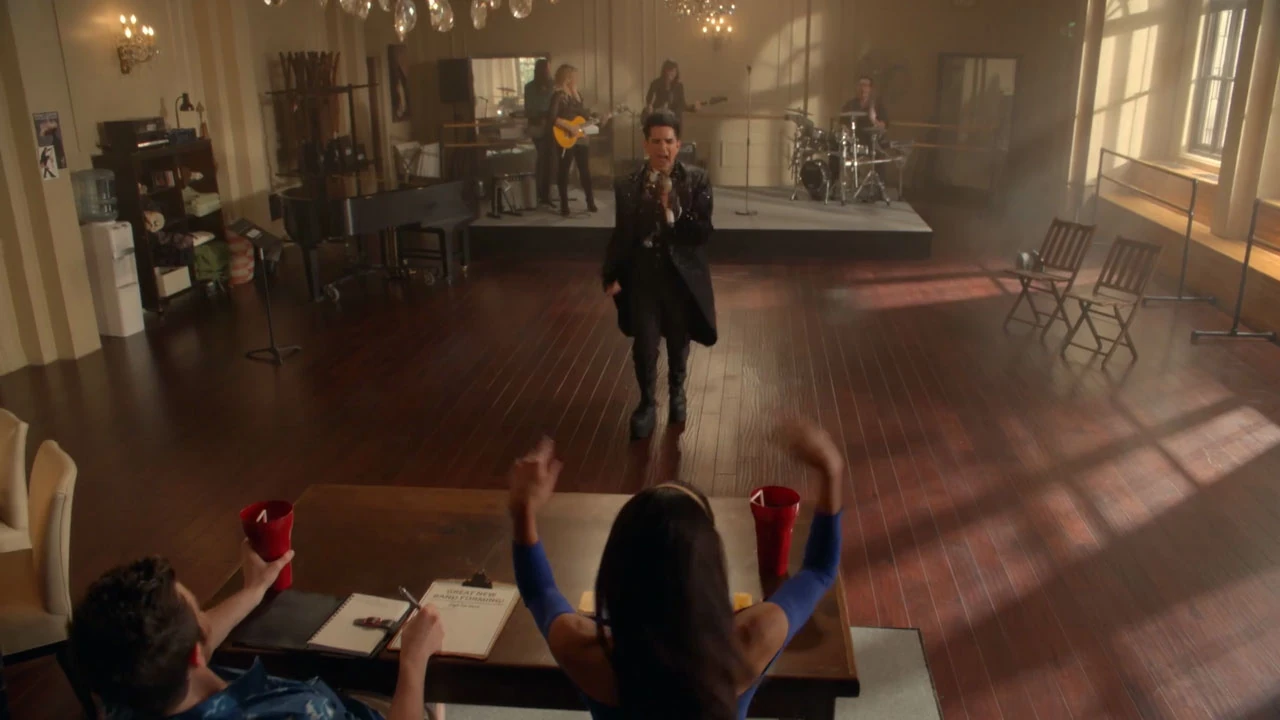 bestimmt war, sie aber Tag für Tag hunderte von Menschen sieht. Jesse erklärt, dass es ihm nicht um sich geht, sondern um Rachel und erzählt ihr, dass ihm ausnahmslos noch niemals jemand mit mehr Talent untergekommen ist. Er ergänzt, dass, wenn jemand eines Tages ein Star wird, es Rachel ist und sie ein wunderbarer Gewinn für die NYADA wäre, dabei versprechend, dass Carmen es nie bereuen würde. Sie erwidert, dass er damals mit Giants in the Sky vorsang, aber große Probleme mit seiner Atemtechnik hatte und seine Aussprache viel zu unsauber war, um dem gerecht zu werden, was zweifellos Sondheims anspruchsvollstes Werk ist. Carmen fügt hinzu, dass seine Leidenschaft und sein Stimmumfang jedoch großartig waren und wünscht ihm viel Glück.