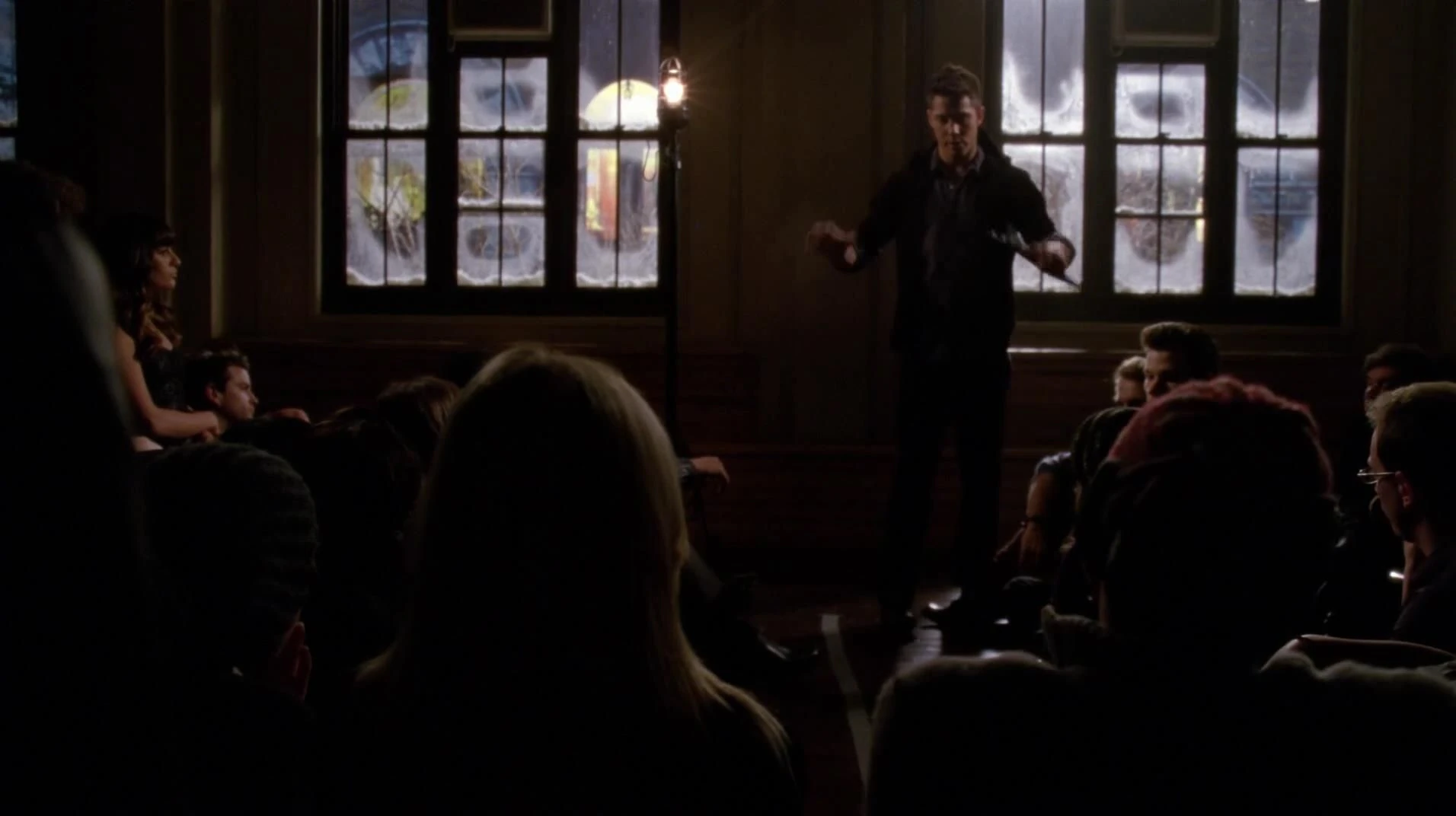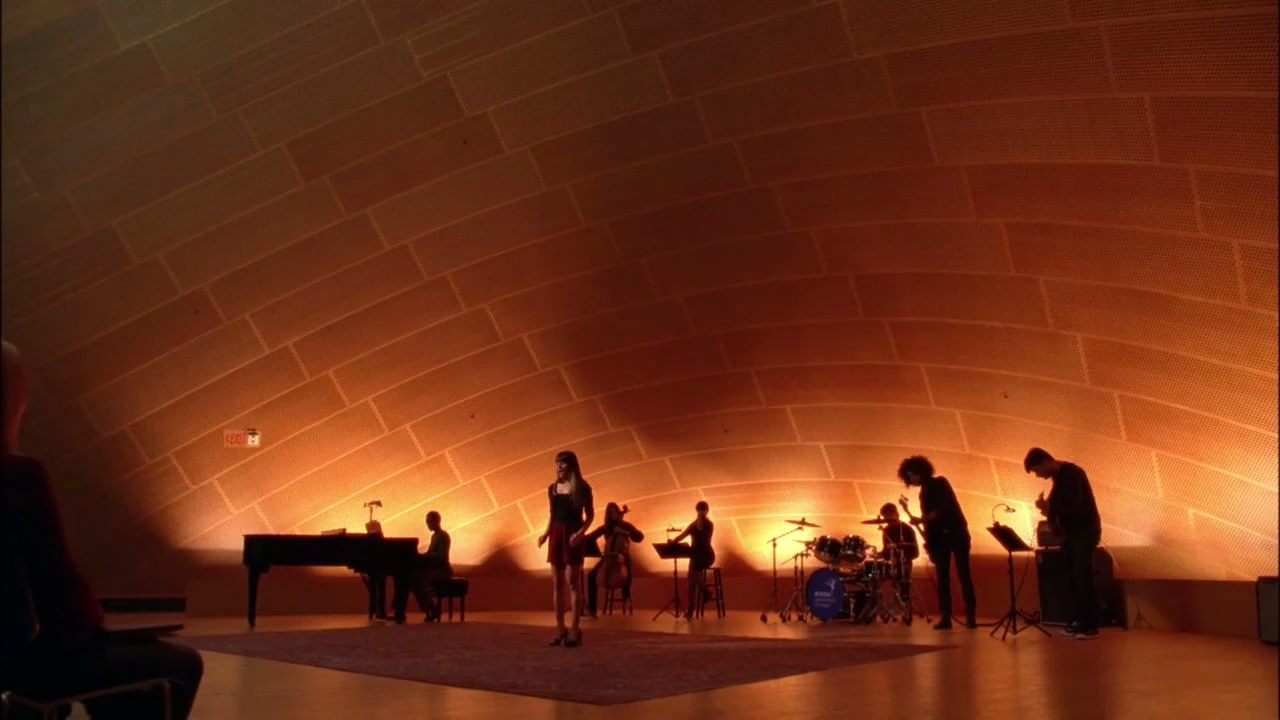 rt, dass es nur Mundwasser ist. Sie macht deutlich, dass sie kein Naivchen mit Kulleraugen mehr sein mag, aber noch jede Drehung um jeden Einzelnen von ihnen tanzen kann, worauf sie zum Beweis Americano/Dance Again performt. Danach hat Rachel Unterricht im "Runden Raum", wo Carmen Tibideaux erklärt, dass die Akustik hier perfekt ist und es keine Ecken gibt, was somit Versteckmöglichkeiten ausschließt. Des Weiteren haben die Erstsemestler zweimal die Möglichkeit, in diesem Raum zu singen, nämlich einmal jetzt sofort, bei ihrem Debüt und das zweite Mal bei der Wintershow am Ende des Semesters, sollte man sie dazu einalden. Den Anfang macht Beatrice McClaine, die Ave Maria singt, jedoch gleich von Carmen u