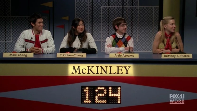 unter anderem Sunshine Corazon in ihrem Team hatten. Anfangs lag die gegnerische Schule weit vor der McKinley, aber dann hat Brittany das Thema "Katzenkrankheiten" gewählt und zum Gleichstand aufgeholt. Als dann die finale Frage zu "weißen Rappern" gestellt wurde, wusste Artie die Antwort. Und jetzt brauchen die Brainiacs ebenso Geld für die Hinreise zum Finale. Die anderen New Directions wundern sich, dass sie ihnen nichts erzählt haben, woraufhin die vier erwähnen, dass sie dies getan hat, aber sie wie üblich nie wahrgenommen wurden.
