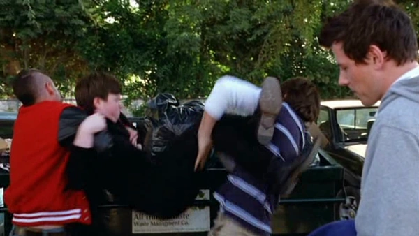 Puck wirft Kurt in den Müllcontainer