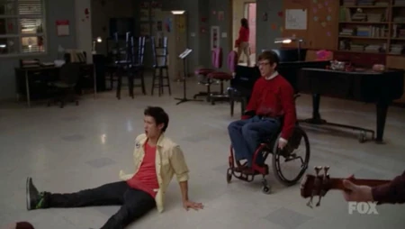 - Die Szene vor der Performance zeigt, dass Artie und Mike freundlich gesinnt sind, trotz dessen, dass Tina Artie wegen Mike verlassen hat.