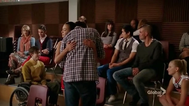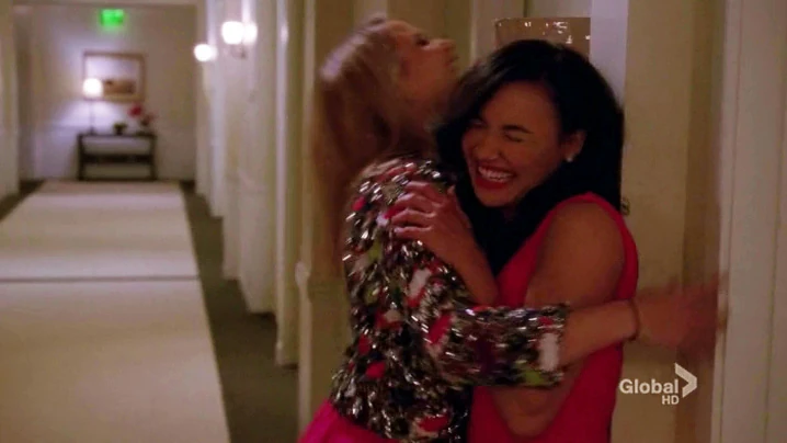 Brittany und Santana umarmen sich nach dem Song