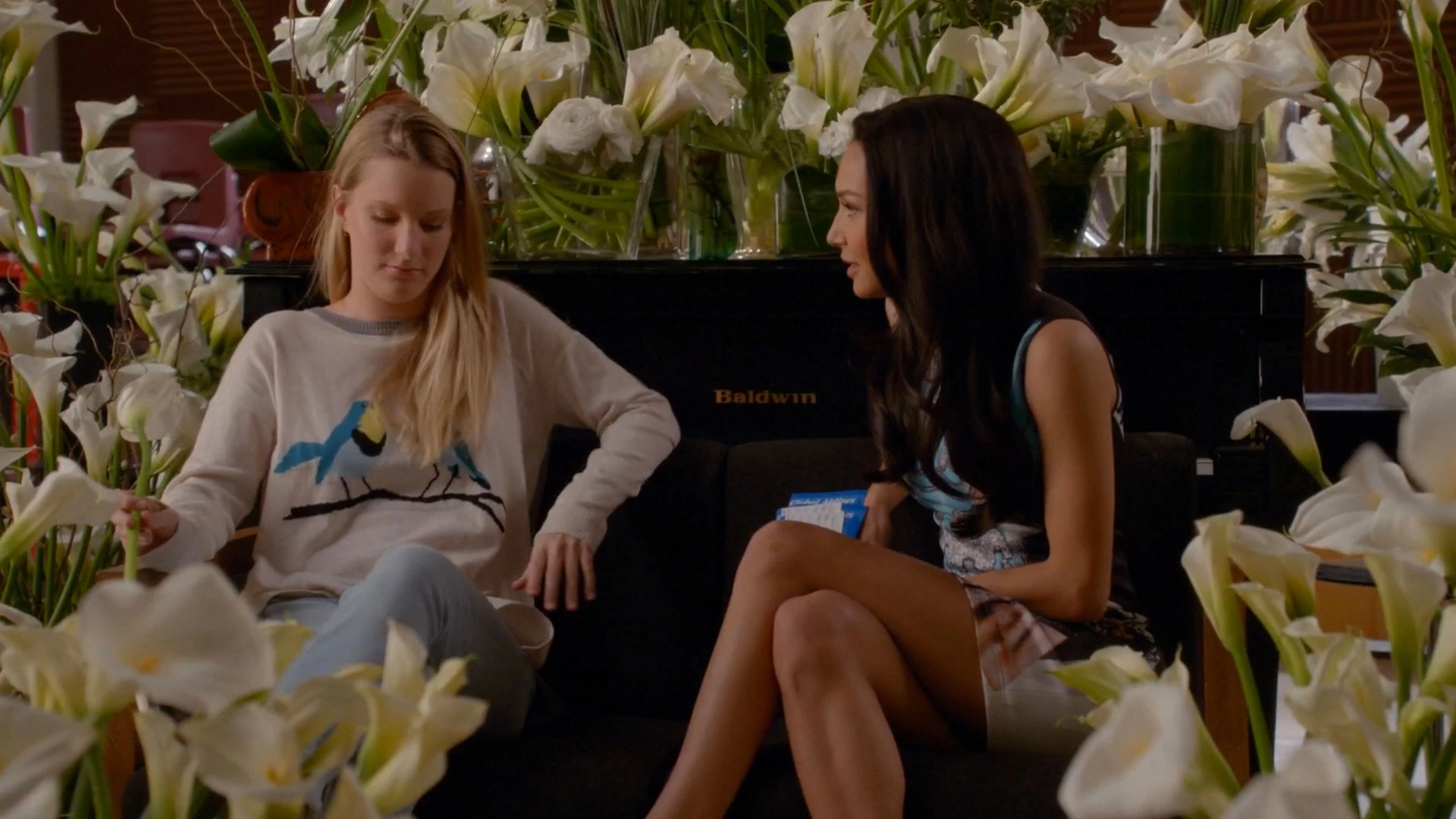 New Directions ist, hinweisen wollte. Später macht Artie mit Brittany Schluss, weil er meint, dass Santana sie manipulieren würde. anach heult sich Brittany bei Santana aus. Später singt Santana für Brittany Songbird, aber als Brittany sagt, dass sie es auch vor den anderen für sie singen soll, beginnt Santana zu weinen und sagt, dass sie dazu noch nicht bereit ist, denn seit im Schmutzfink steht, dass sie lesbisch ist, die Leute
