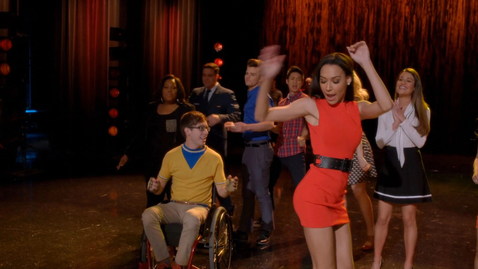 bekommt und Kurt dazwischen gehen muss, weil die Mädchen gar nicht aufhören wollten. Bei den Proben meint Mercedes, dass sie die Anführerin der Troubletones sei, Santana streitet das ab, da sie findet, dass sie dafür besser geeignet ist. Mercedes meint, dass sie es war, die Santana dazu überredet hat den Troubletones beizutreten. Shelby findet, dass sie einfach abstimmen sollten. Alle melden sich für Mercedes, außer Brittany. Im Schulflur entschuldigt sie sich sarkastisch bei Finn dafür, dass sie sie schlagen werden und sowieso besser sind. Außerdem macht sich Santana über Finns Gesang, seinen Tanzstil und seine Beziehung mit Rachel lustig. Als Santana geht, Finn ruft ihr hinterher, dass der einzige Grund für ihre