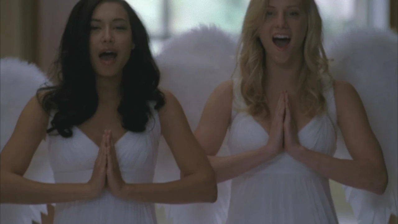 und um diese dazu zubringen aus dem Glee Club auszusteigen. Als dieser das Date mit den Zweien annimmt, muss er fest stellen, dass die Mädels sich eher mit sich selbst beschäftigen und Santana sagt schließlich, dass er seine Kreditkarte dalassen und im Auto auf sie warten soll. Sie und Brittany sind der Meinung, dass Puck heiß ist und Finn süß, aber nicht heiß.