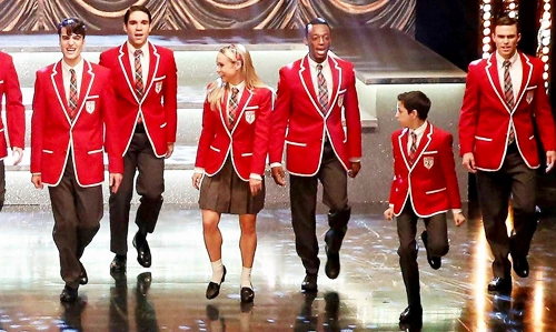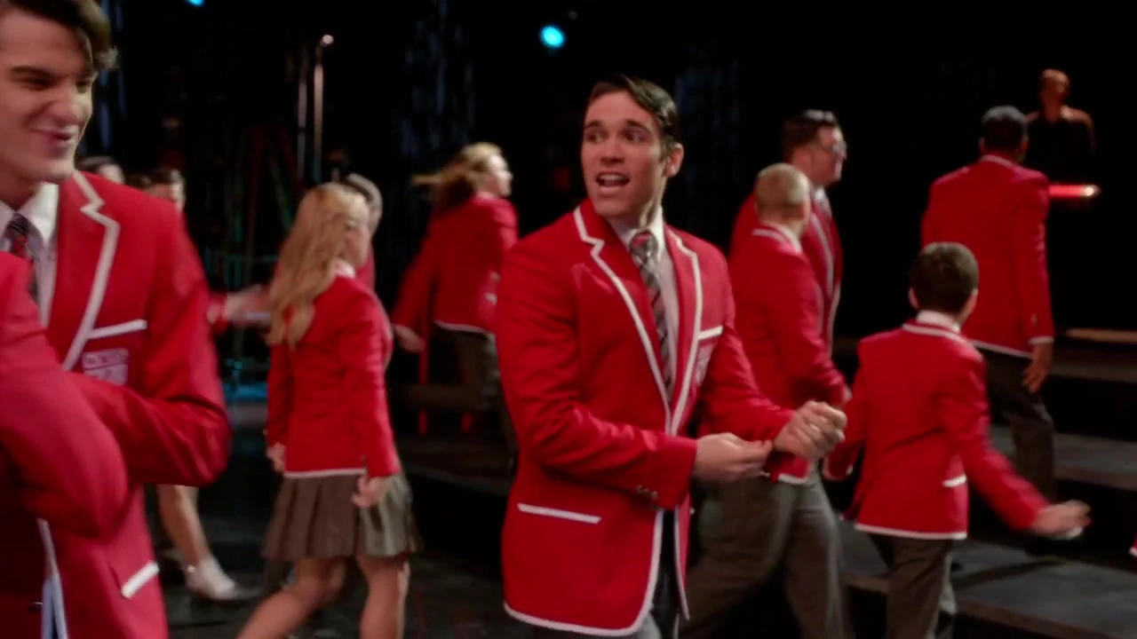 Kurt stimmt Jane zu, dass sie einige Veränderungen vornehmen müssen. Skylar äußert, dass Teams Uniformen tragen und ist der Ansicht, dass sie sich einen Blazer besorgen sollten, zu was Blaine zustimmt. Jane und Spencer entgegnen, dass das McKinley ist und ihr "sexistisches Imperium" hier nicht existiert. Nun verärgert, fährt Skylar fort, dass ihr Aussehen ikonisch ist und Tradition hat und sie dadurch außerdem sexier werden, was die Mädchen mögen, worauf Myron nach einem Blazer fragt, während Kitty die Äußerung in Frage stellt. Daraufhin erklärt Kurt, dass sie sie mit offenen Armen empfangen haben und sie nicht von ihnen verlangen können, ihren Look für sie zu ändern, da die McKinley eine andere Schule ist. Blaine merkt an, dass es den Ärger sparen könnte, neue Klamotten zu finden und Rachel schlägt vor, dass sie bei Wettbewerben die Kostüme der New Directions tragen. Die Warblers sind dagegen, da ihne ihre Outfits nicht gefallen und Will macht klar, dass sie nun auf die McKinley gehen und ihre Blazer los werden müssen. Skyler antwortet, dass sie dankbar sind, mit ihnen zu performen, sie sich aber nicht ausgesucht haben, hierher zu kommen und die ihnen die Blazer etwas bedeuten. Sie werden von Beiste unterbrochen, der ihnen mitteilt, dass sie größere Probleme haben, da Sue der neue Coach von Vocal Adrenaline ist. Später performt er mit den New Directions und Warblers in Warbleroutifts, allerdings ohne Blazer, Rise, als Blaine mit roten Blazern hereinkommt, die die Schulen beider Chöre repräsentieren. Die Gruppe singt und tanzt zusammen und ist endlich als Team vereint. Blaine gesellt sich zu Kurt und Rachel und die drei sind sichtlich stolz auf ihre Gruppe, die am Ende des Songs die Hände heben, als Zeichen, dass sie auferstanden sind.