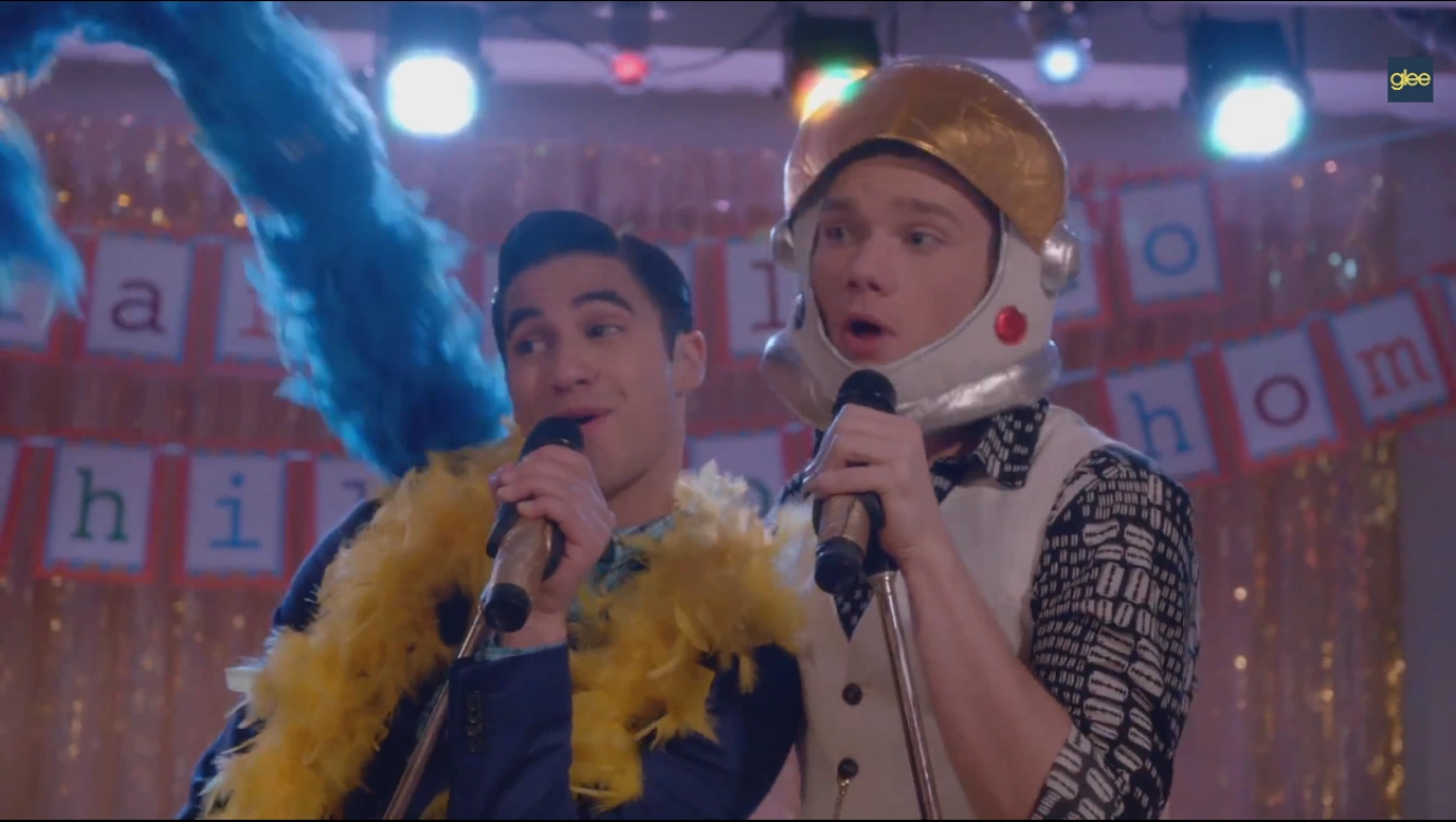 Kurt mit Absolventen und New Directions (Blaine):