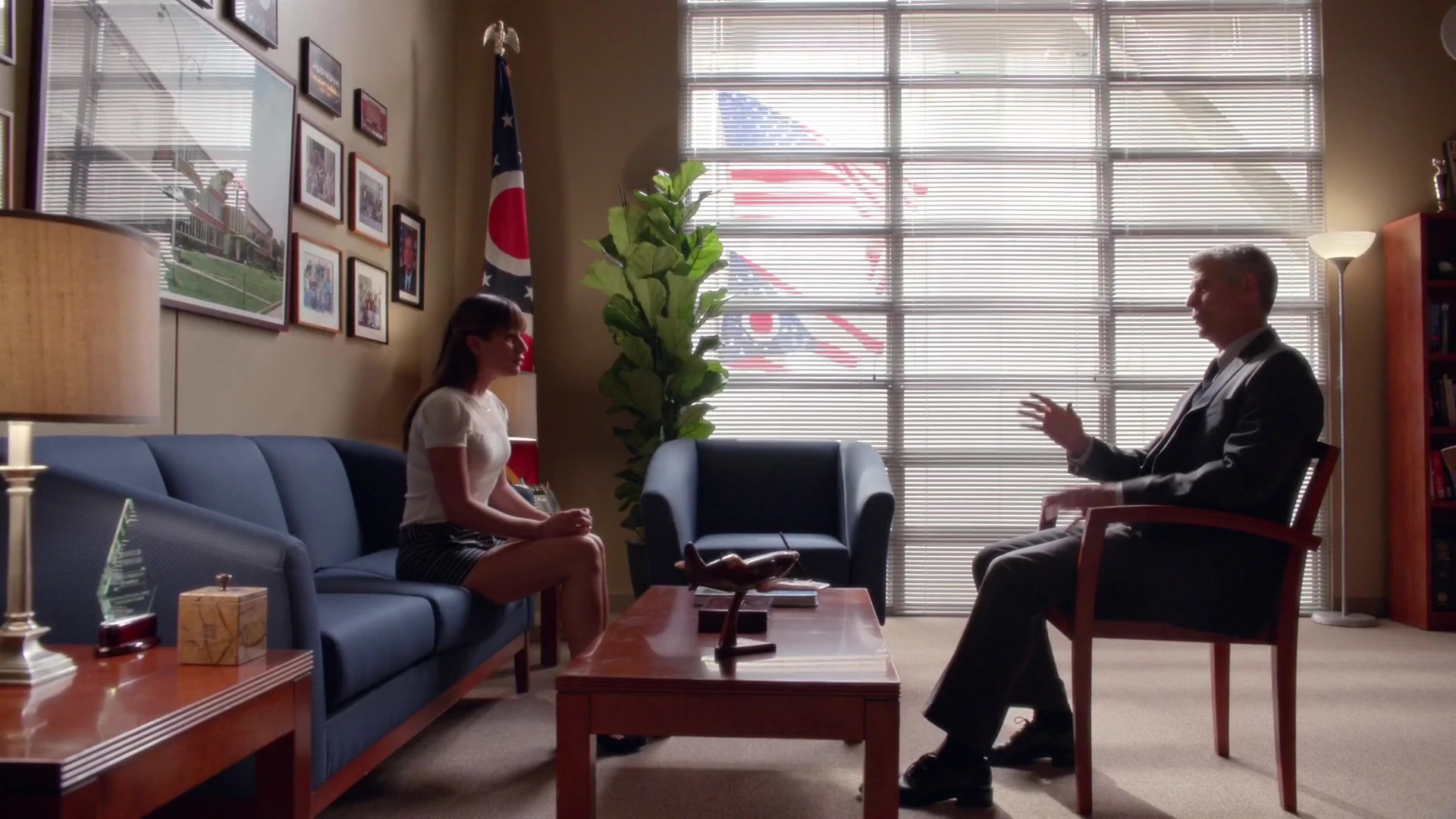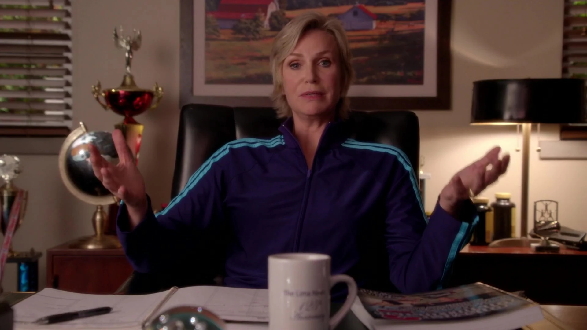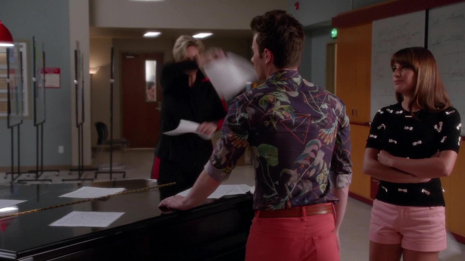 In Sues Büro verkündet diese, dass ihre Sekretärin ein Sträfling ist und ihnen versucht zu helfen und beleidigt dann Rachels Serie, meinend, dass es ihre Erwartungen des Scheiterns übertroffen hat. Rachel geht darauf nicht ein und kommt auf den Glee Club zu sprechen, über dessen Wichtigkeit die beiden streiten. Sue meint, dass Rachel das Gesicht der Künste war, jetzt aber nicht mehr und wirft sie raus.