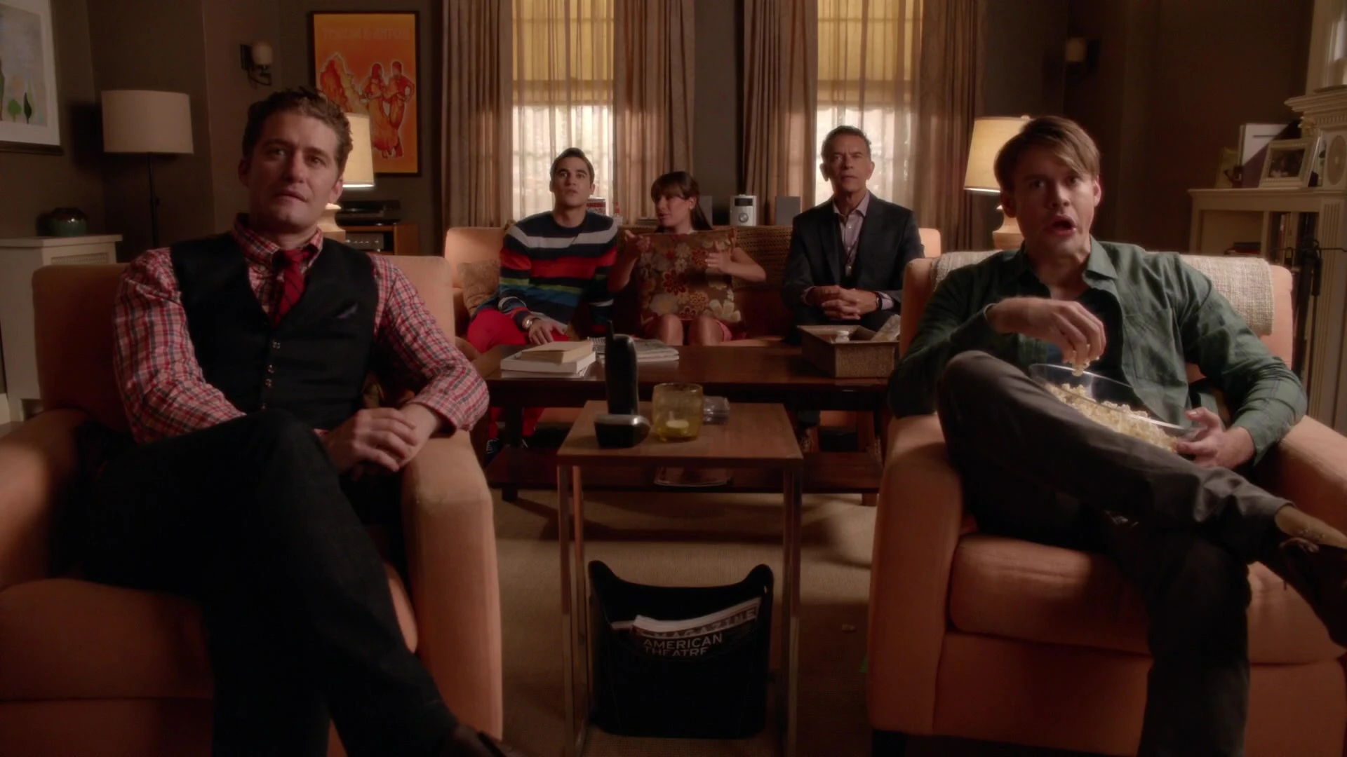 In Wills Wohnung haben sich er, Blaine, LeRoy und Sam zusammen gefunden, um mit Rachel ihre TV-Serie anzusehn. Sie ist zwar dagegen, doch die anderen gehen nicht auf sie ein. Nachdem sie etwas vom Anfang gesehen haben, meint Rachel, wie schlecht das ist und während Blaine ihr widerspricht, stimm Sam ihr zu. Sie sehen weiter, als Blaine nach ein paar Minuten wissen möchte, wo das Singen bleibt. Rachel erklärt, dass es herausgeschnitten ist und unterbricht dann, da die Witze und Darstellung ungeheuerlich ist. Die anderen sind sich einig, dass sie nicht von der Serie zurückgehalten werden sollte, sondern für das beurteilt wird, was nun tut.