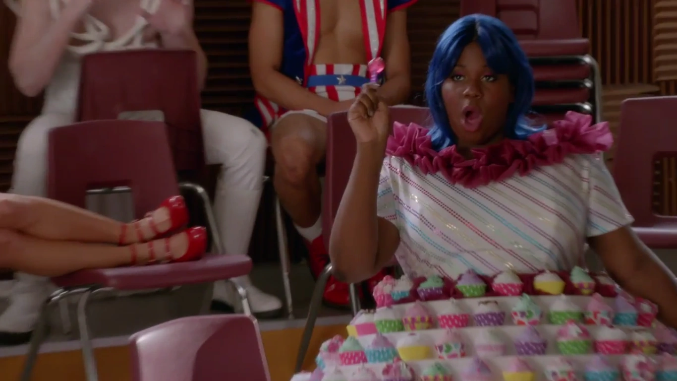 Anschließend will er wissen, wer eine Katy Perry und wer eine Lady Gaga ist, wobei Unique sich als Letztere sieht, genau wie Jake, Kitty und Tina und somit einen Katy Perry Song performen muss. Mit ihrer Gruppe ist sie dann im Chorraum und überlegt sich Ideen bezüglich ihres Auftrittes, jedoch bringen sie nach fünf Stunden immer noch nichts Vernünftiges hervor, so dass Jake meint, dass er jetzt geht, um den Cheerios zu helfen. Kitty will wissen, ob Bree ihn da reingeredet hat, erhält aber keine Anwort darauf, was Unique zum Anlass nimmt, Marley an zu rufen und ihr
